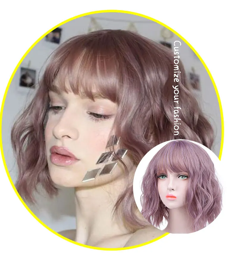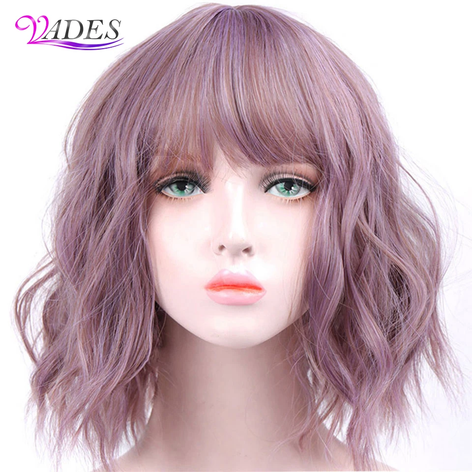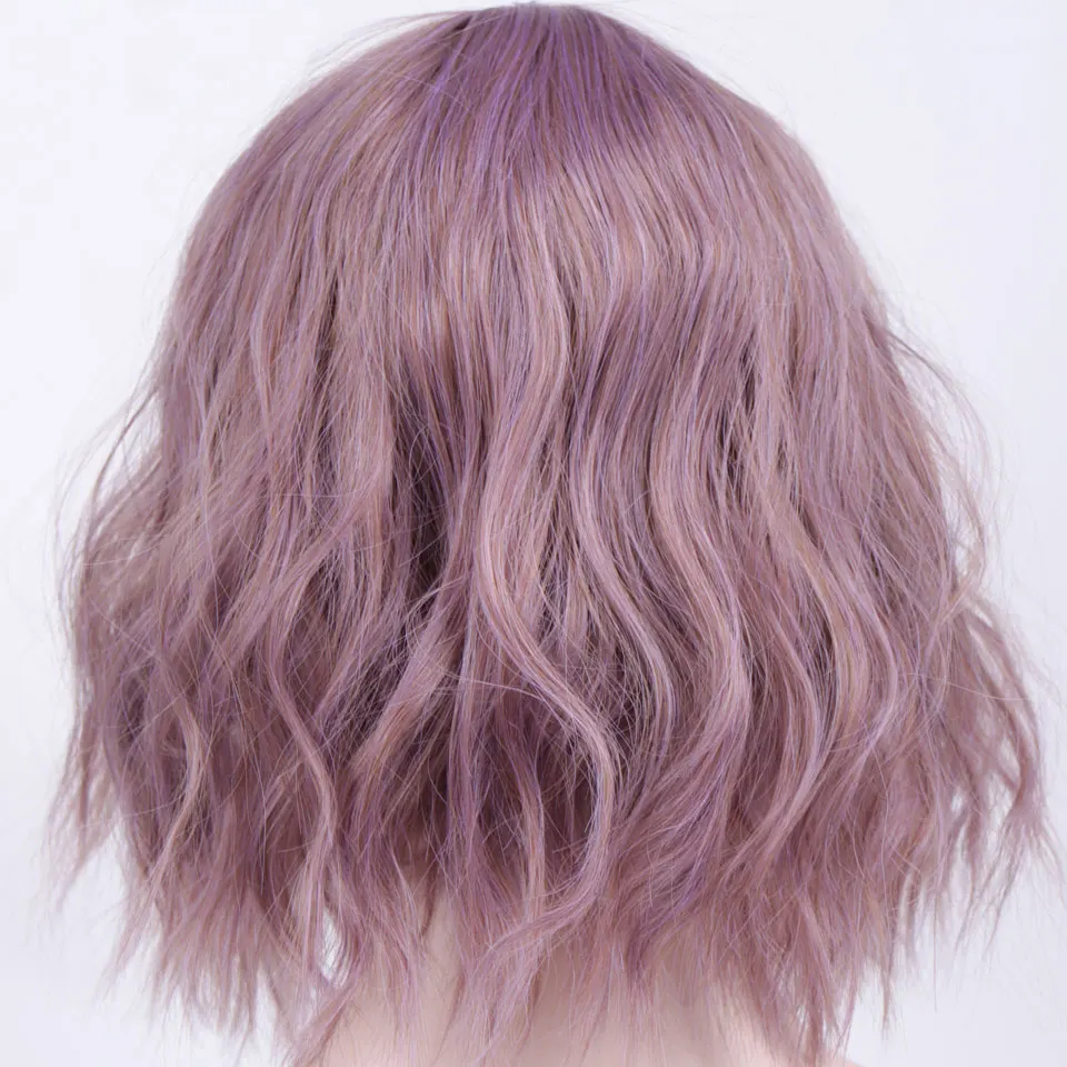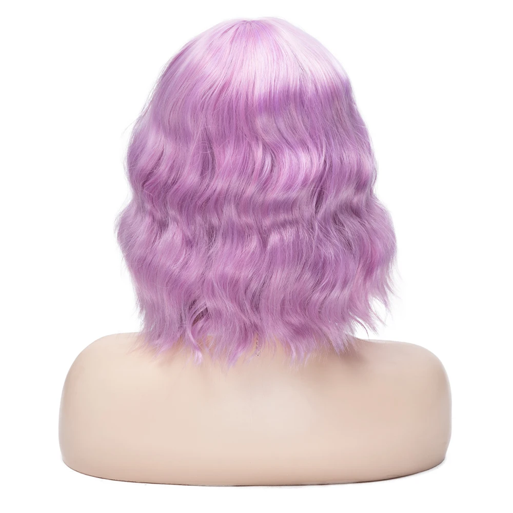 Короткие водные волнистые парики, синтетический Боб, волосы с аккуратным взрывом, объемные волосы для белых женщин, Розовый Коричневый Синий Фиолетовый на выбор BY045