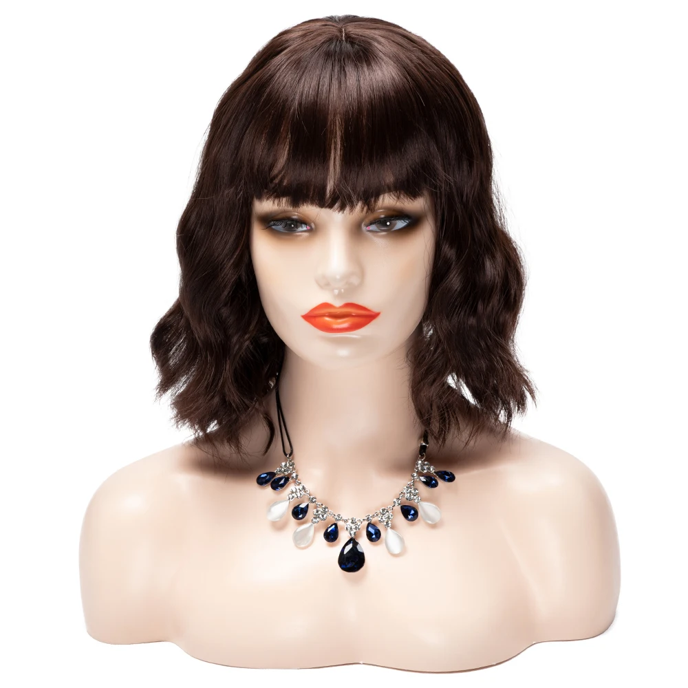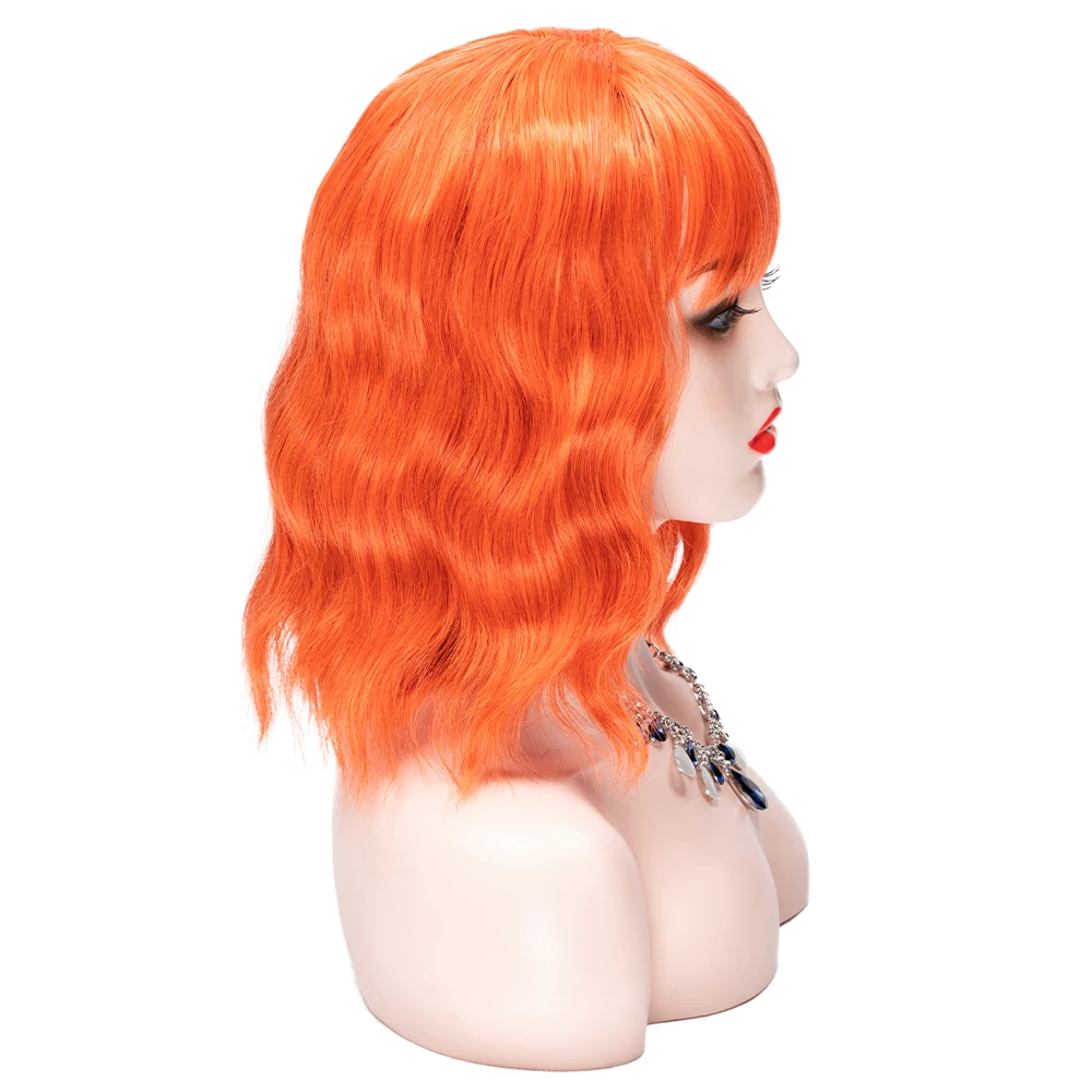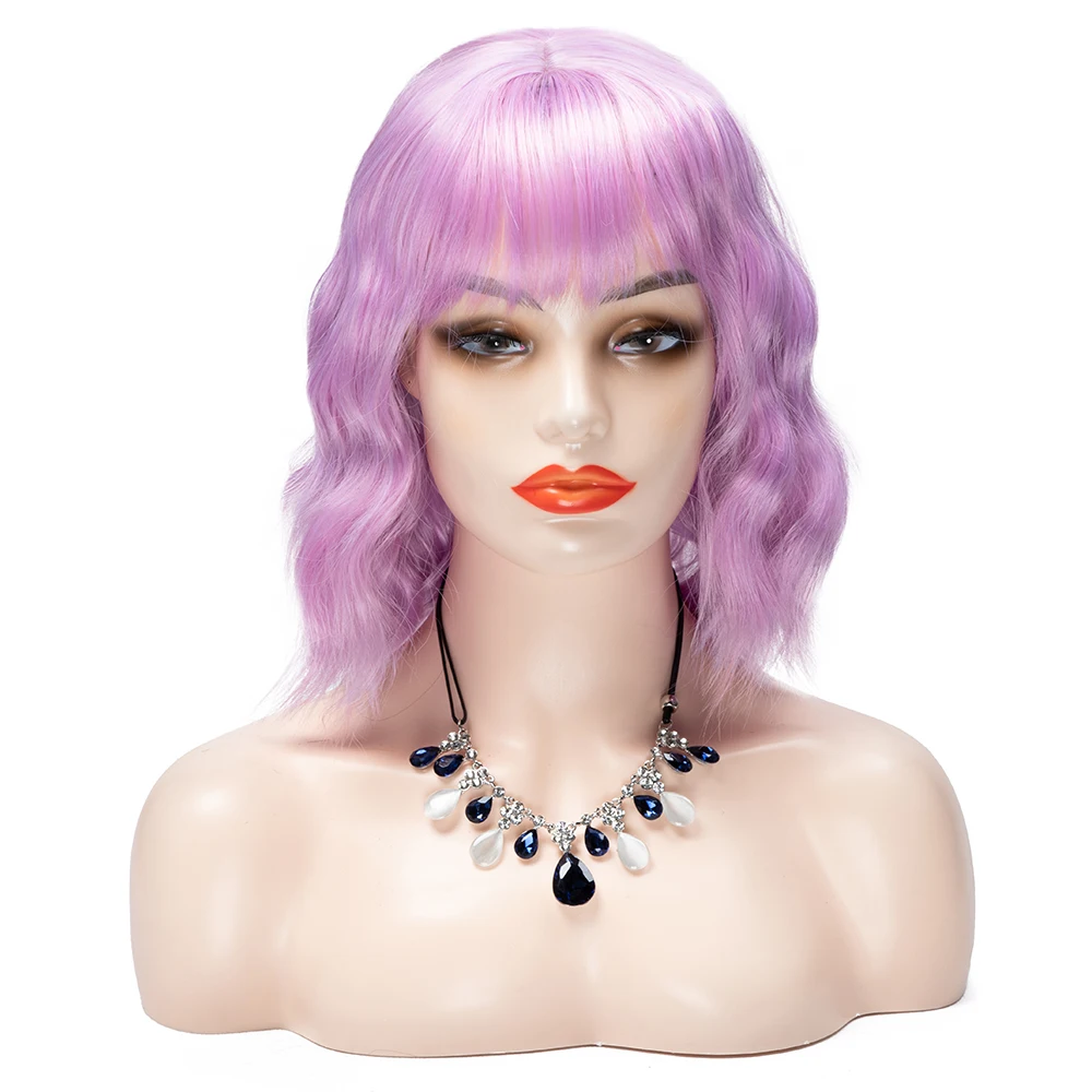Короткие водные волнистые парики, синтетический Боб, волосы с аккуратным взрывом, объемные волосы для белых женщин, Розовый Коричневый Синий Фиолетовый на выбор BY045