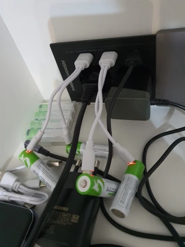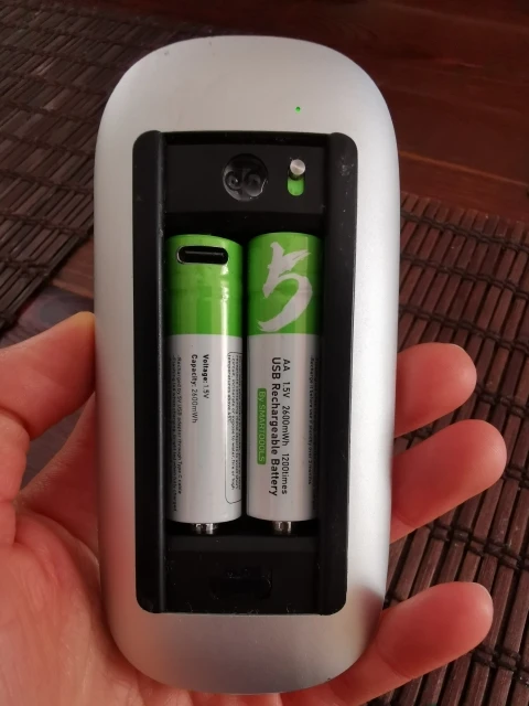 Батареи хорошо упакованы. Зарядный красный свет мигает внутри порта USB-C. Мне нравится, потому что это не так ярко и тревожно ночью. Мультиметр показывает, что 1,5 В и батареи хорошо работают в клавиатуре и мышке. Имейте в виду, что во время подзарядки на полюсах батареи 5 вольт. Всегда удаляйте батареи с устройства при перезарядке, в противном случае вы получите 10 в вместо 3 в для стандартных двух серий в серии. Батареи поставляются с предзарядкой, около 95%. Отличный продавец!