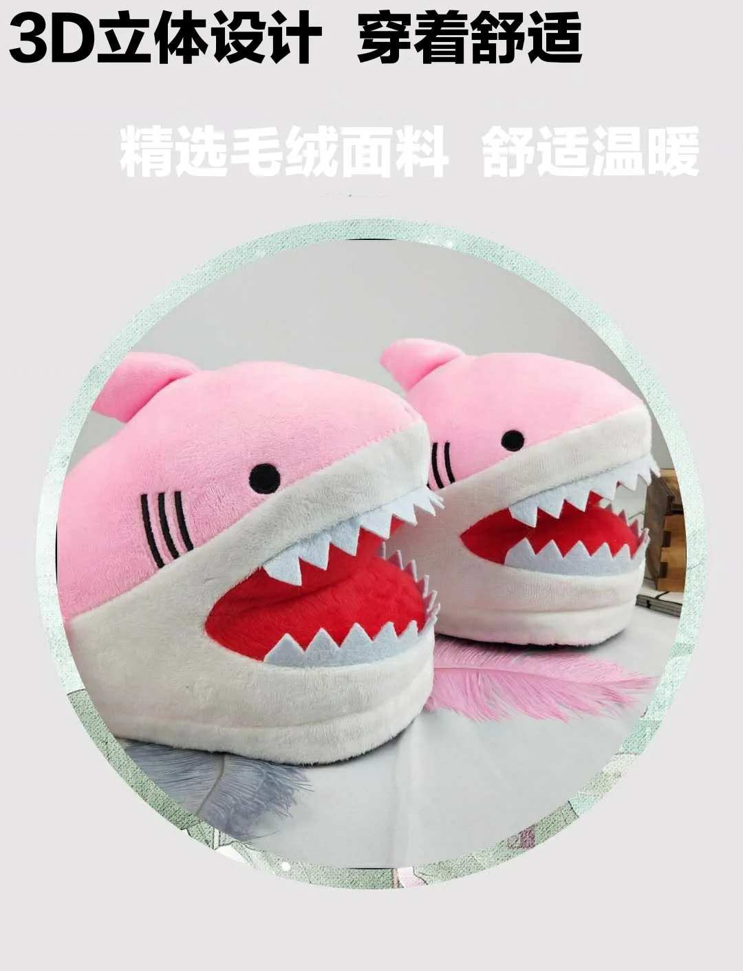 Розовая Акула пушистые Шлепанцы женские творческие аниме слипоны та...