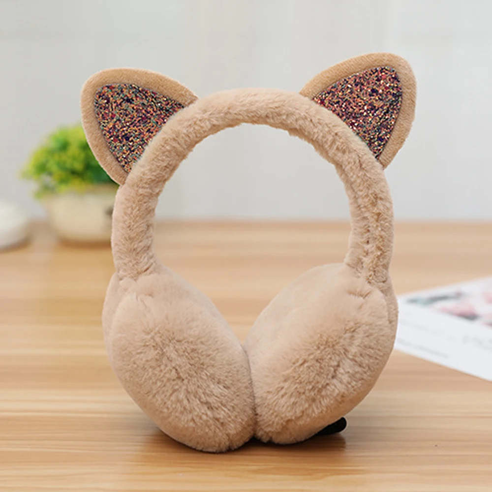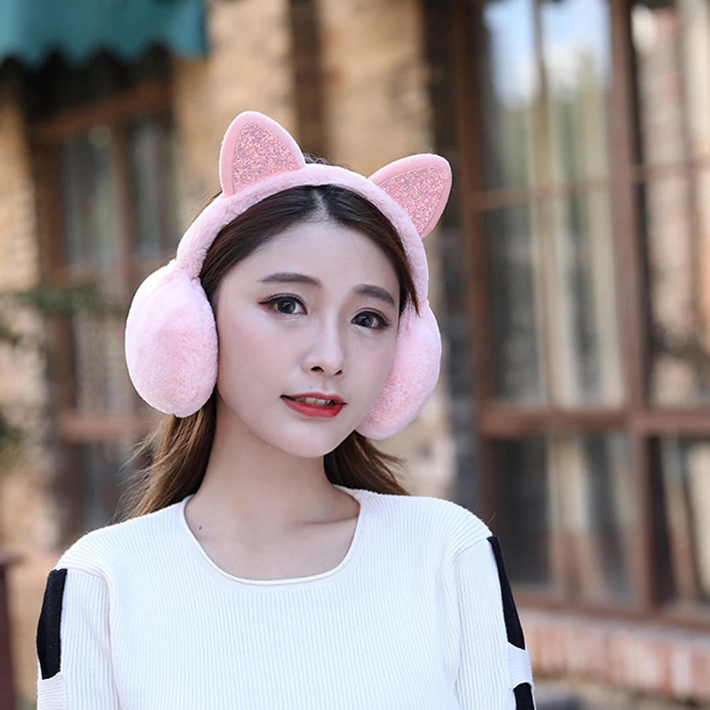 Сезон осень-зима; Теплое пальто с искусственным мехом для маленьких наушники с милыми кошачьими ушками, для девочек шапки-ушанки плюшевые наушник для девушек и женщин; Женская обувь повязки на голову, стразы для ушей