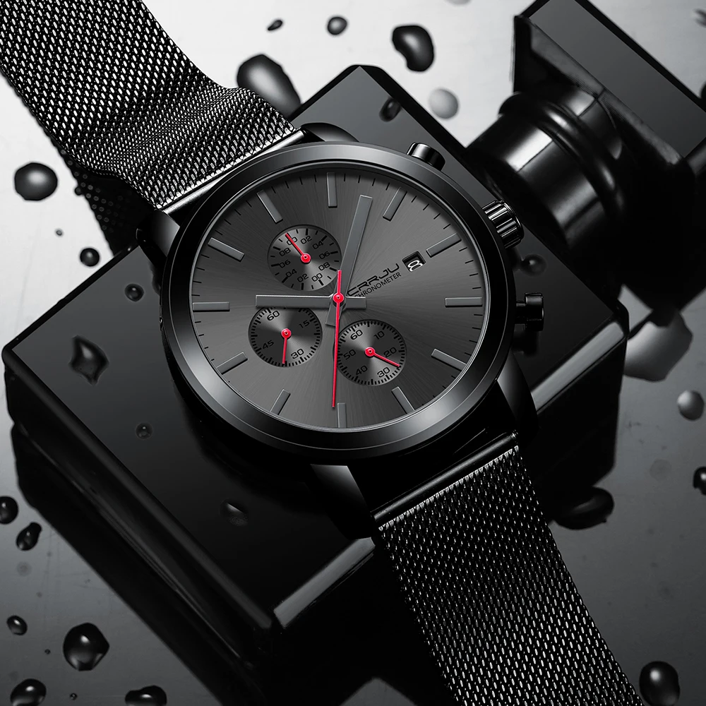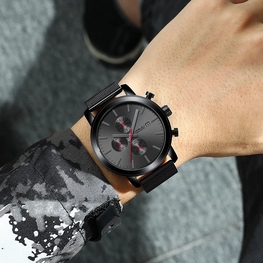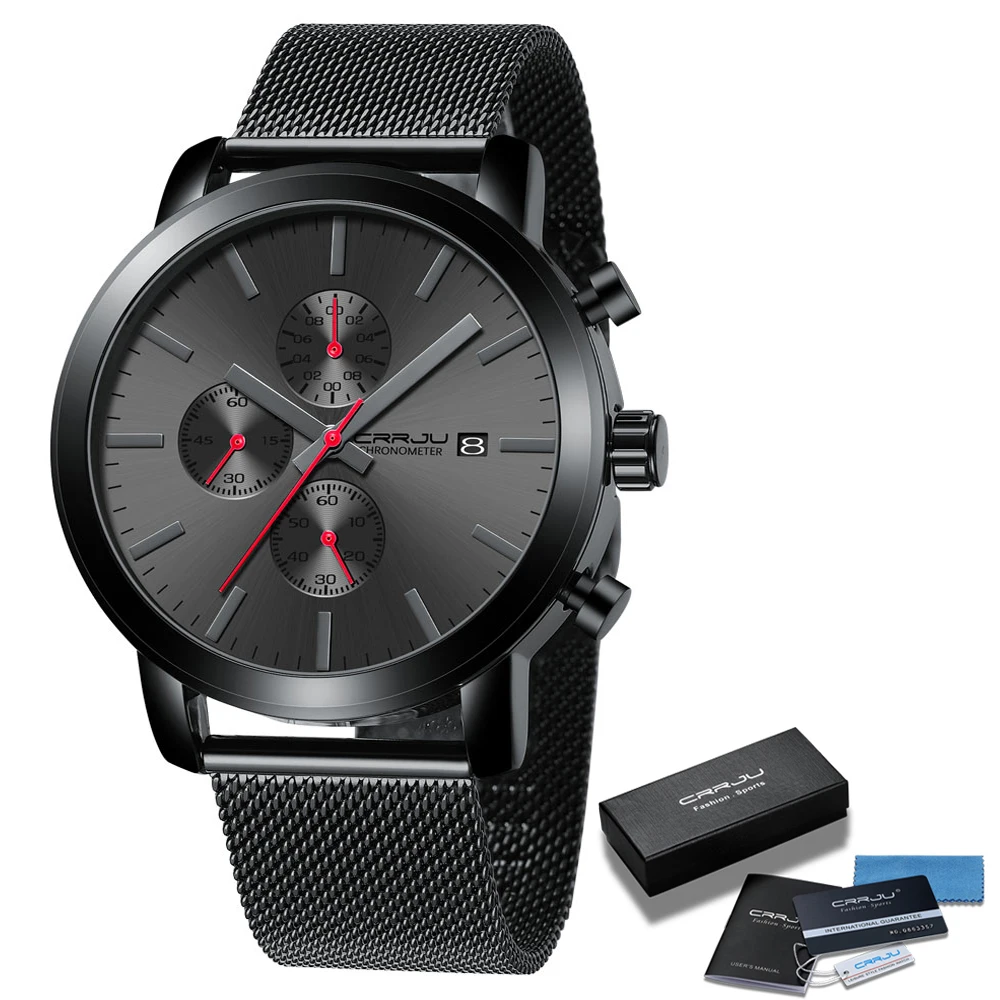 Мужские часы CRRJU, деловые кварцевые наручные часы с сетчатым хрон...