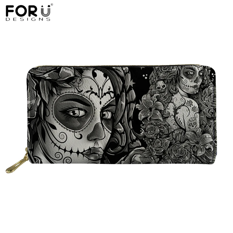FORUDESIGNS Ретро готический принт черепа кошельки брендовый Дизайн День мертвых женщин PU кожаный кошелек длинный стиль кошелек для женщин