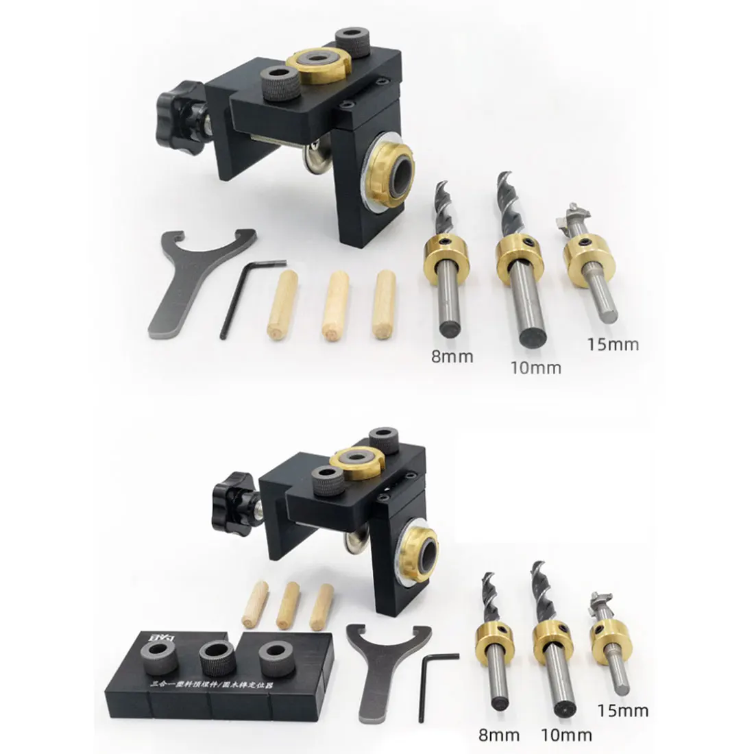 3. Металлические втулки 8 мм, 10 мм, 15 мм, точное выравнивание при сверлении отверстий, легкая регулировка высоты и глубины отверстий
