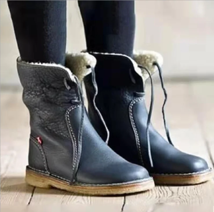 Теплые женские зимние ботинки, зимние плюшевые ботинки на шнуровке,...