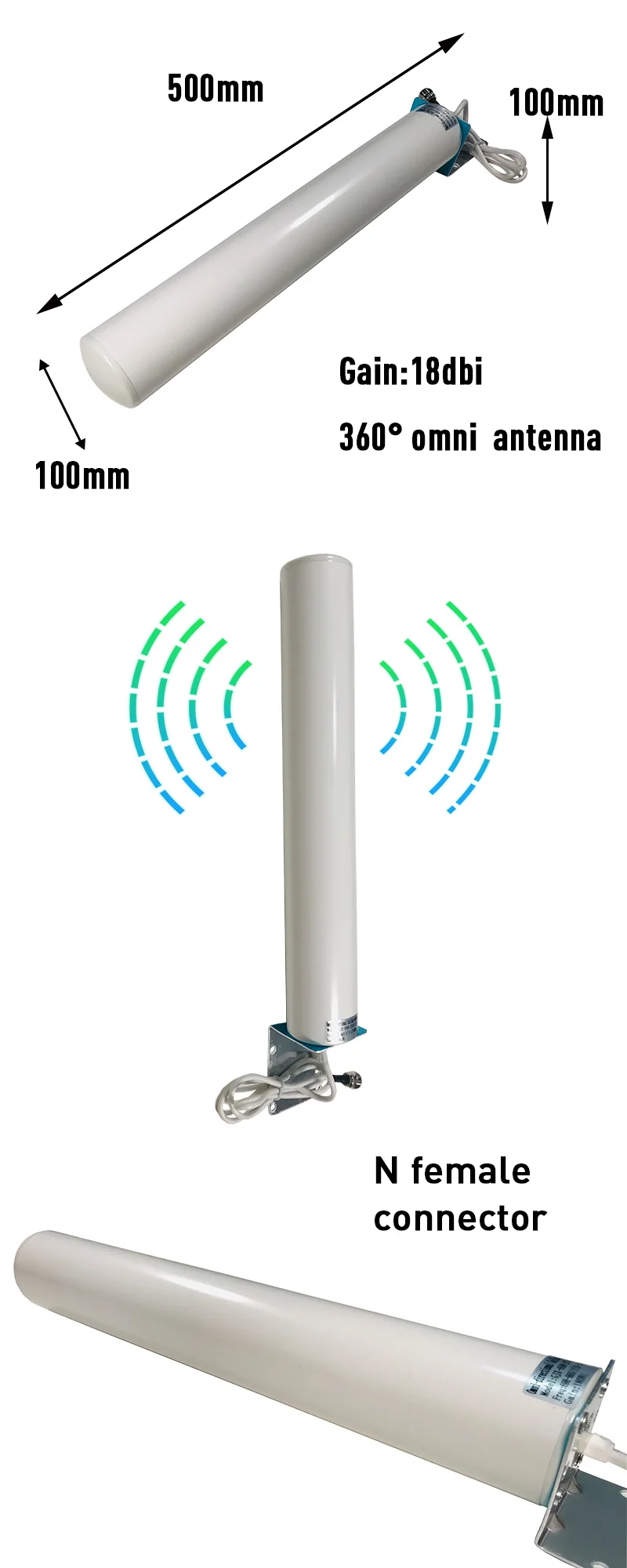 Упаковка включает:1.18dbi 360 ° omni наружная антенна2. 9dbi панель внутренней антенны3. Кабель 15 метров
