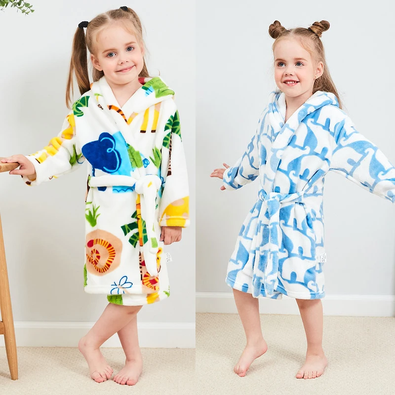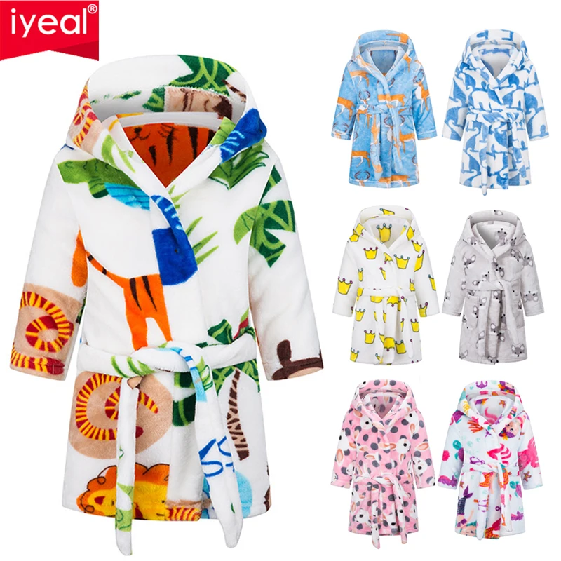 Халат IYEAL детский фланелевый, модная одежда для сна с мультяшным принтом, мягкая теплая ночная рубашка для мальчиков и девочек
