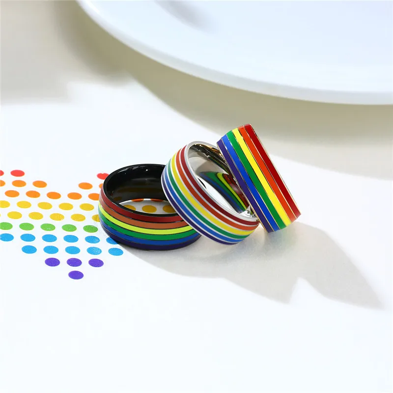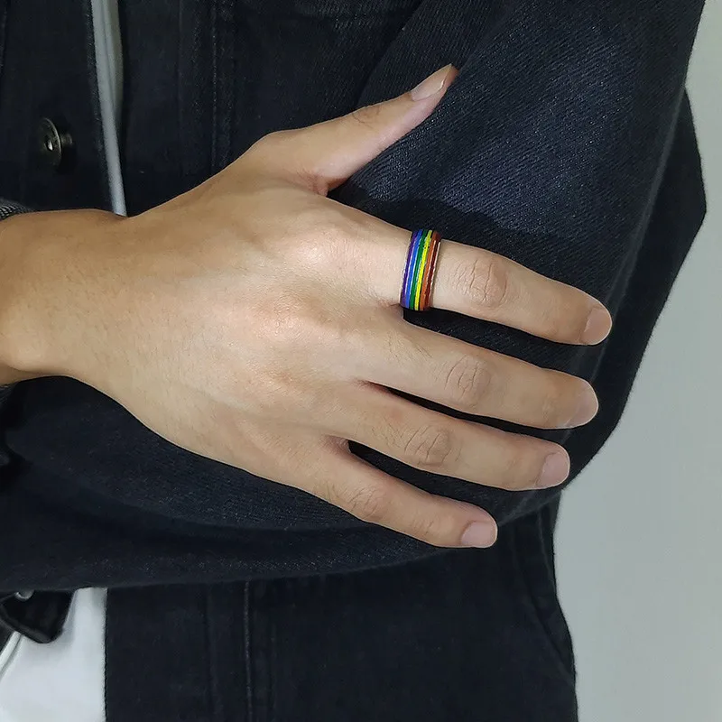 Мужское кольцо Радужное кольцо с полосками из нержавеющей стали ЛГБ...