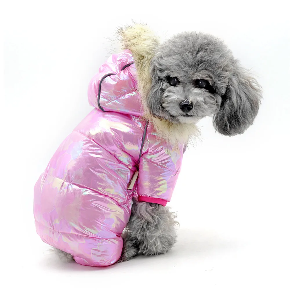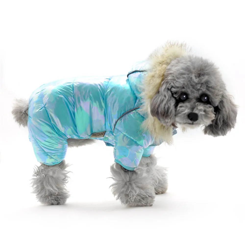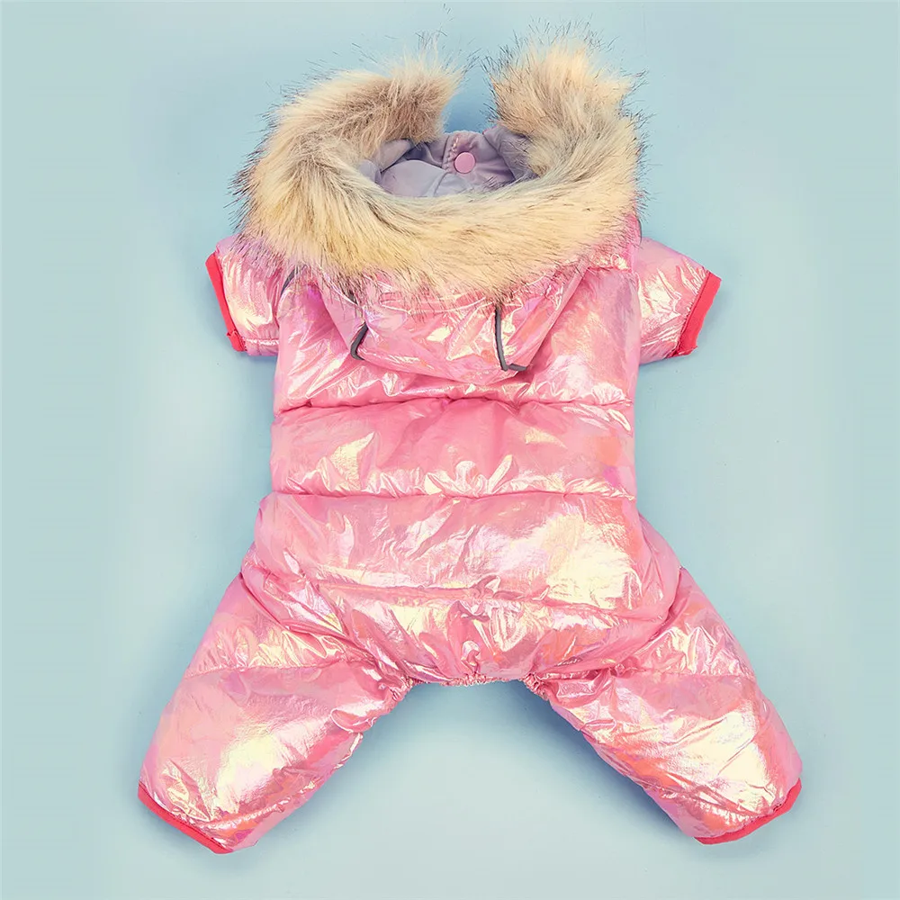 Одежда для собак, зимний роскошный меховой воротник, комбинезон для собак, водонепроницаемый, с подкладкой, для маленьких собак, теплый комбинезон