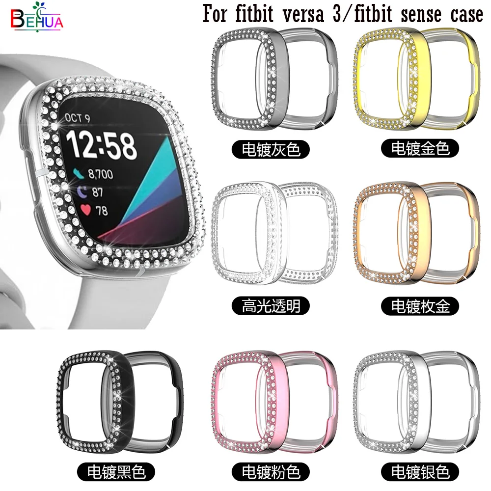 Мягкий чехол из поликарбоната с рамкой для Fitbit versa 3 / Sense Diamond, чехол для часов s, защитная пленка для экрана, бампер для женщин, блестящий защитный чехол