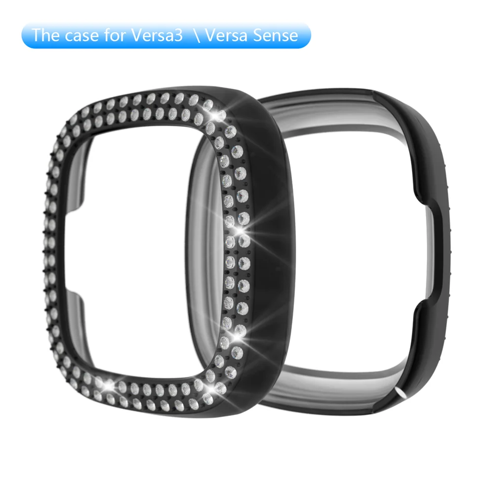 Жесткий чехол из поликарбоната для Fitbit versa 3 Sense Two Rows Алмазный чехол для часов s, защитная пленка для экрана, бампер для женщин, блестящий защитный чехол