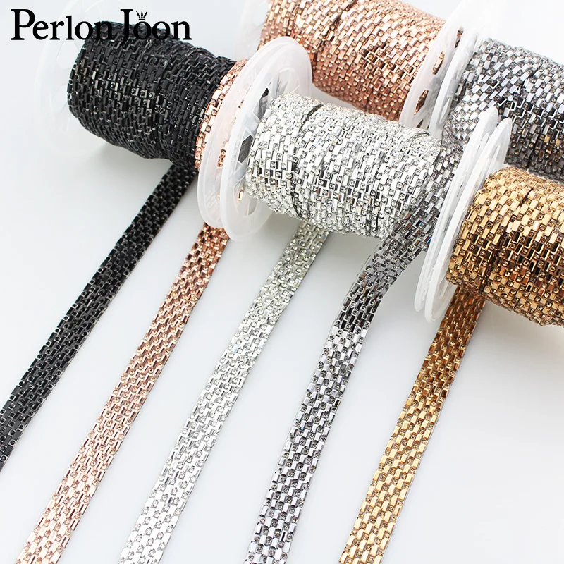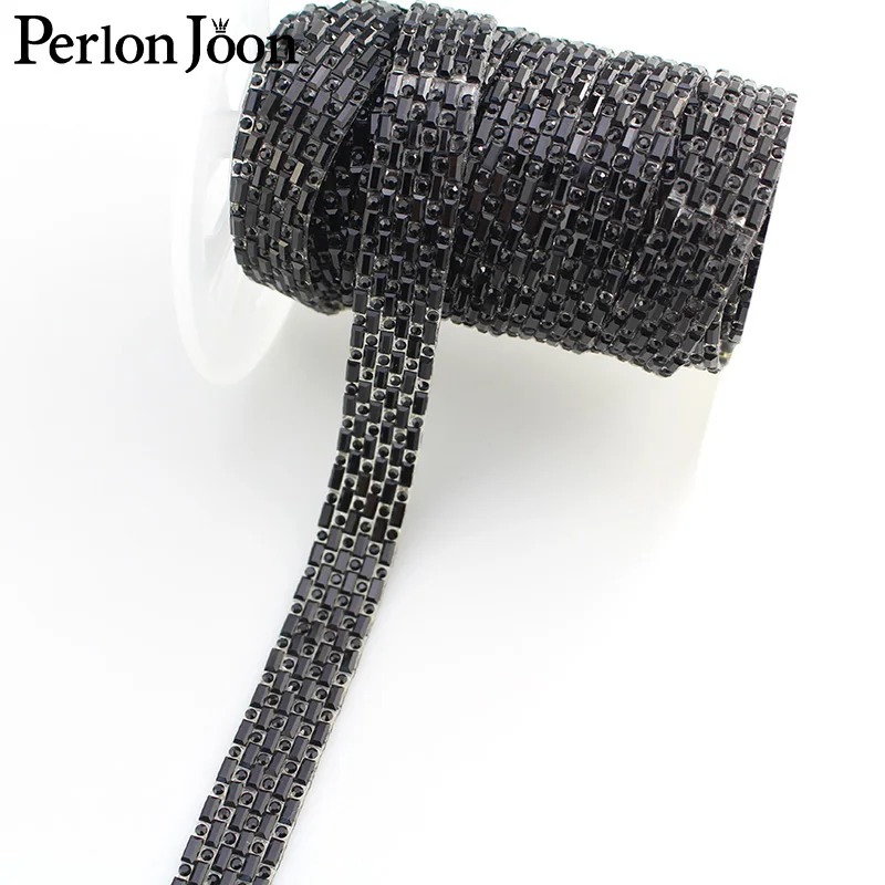 Обрезанная лента для стразы, черного цвета, с кристаллами, золотого цвета, для украшения обуви, TR099