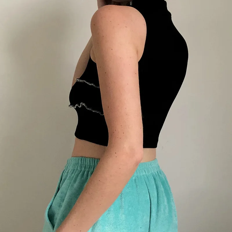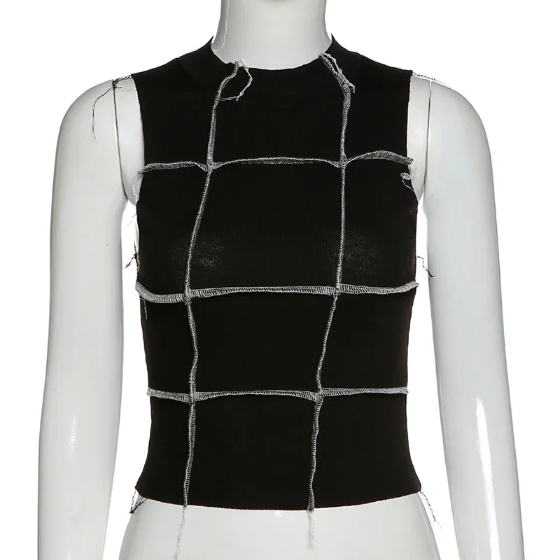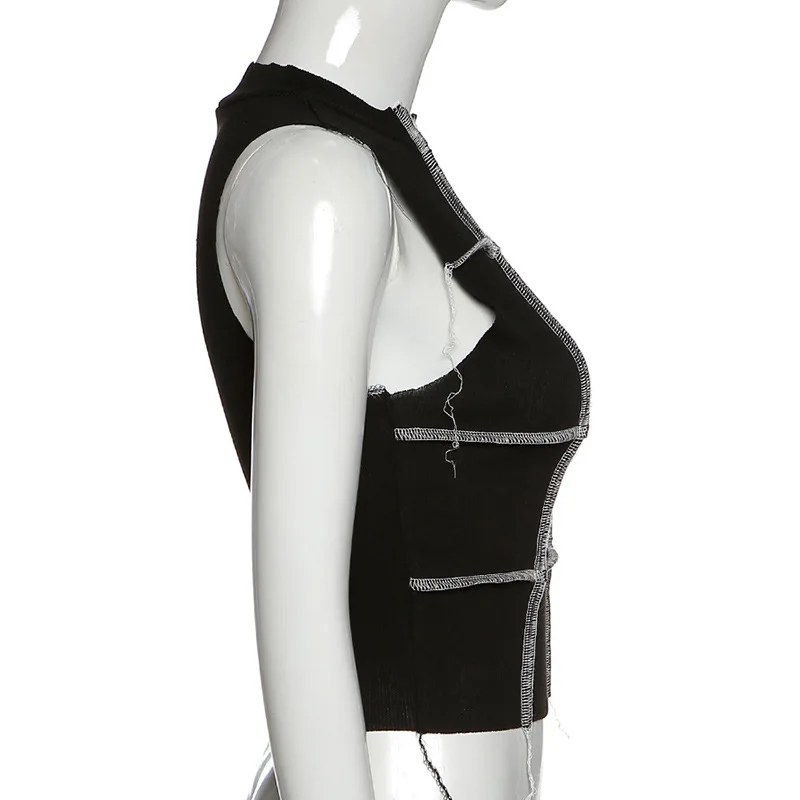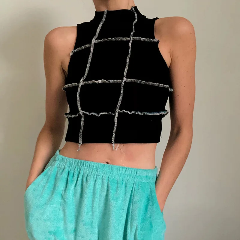 Женский топ без рукавов, с круглым вырезом и открытым пупком, летний топ контрастных цветов, укороченный топ Y2k