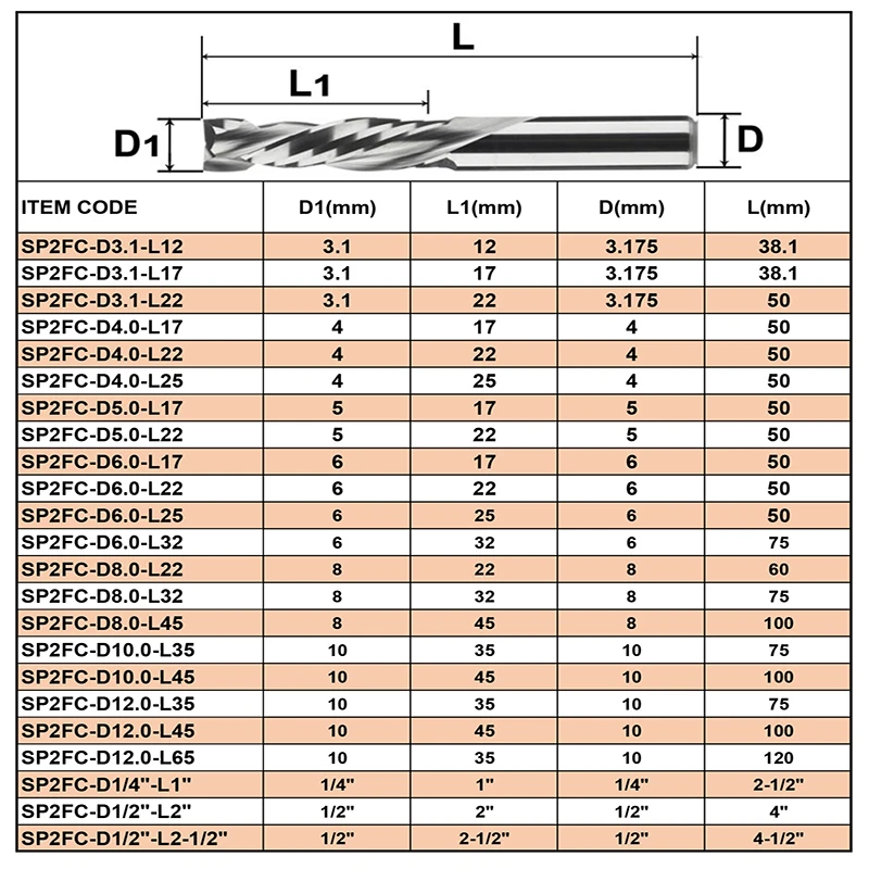 cutting diameter3.175mm 4mm 5mm 6mm, 8mm, 10mm