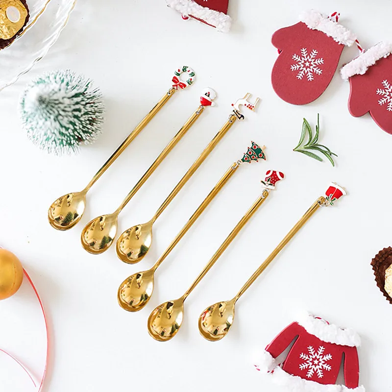 Рождественские ложки из нержавеющей стали, ложка для кофе для вечер...