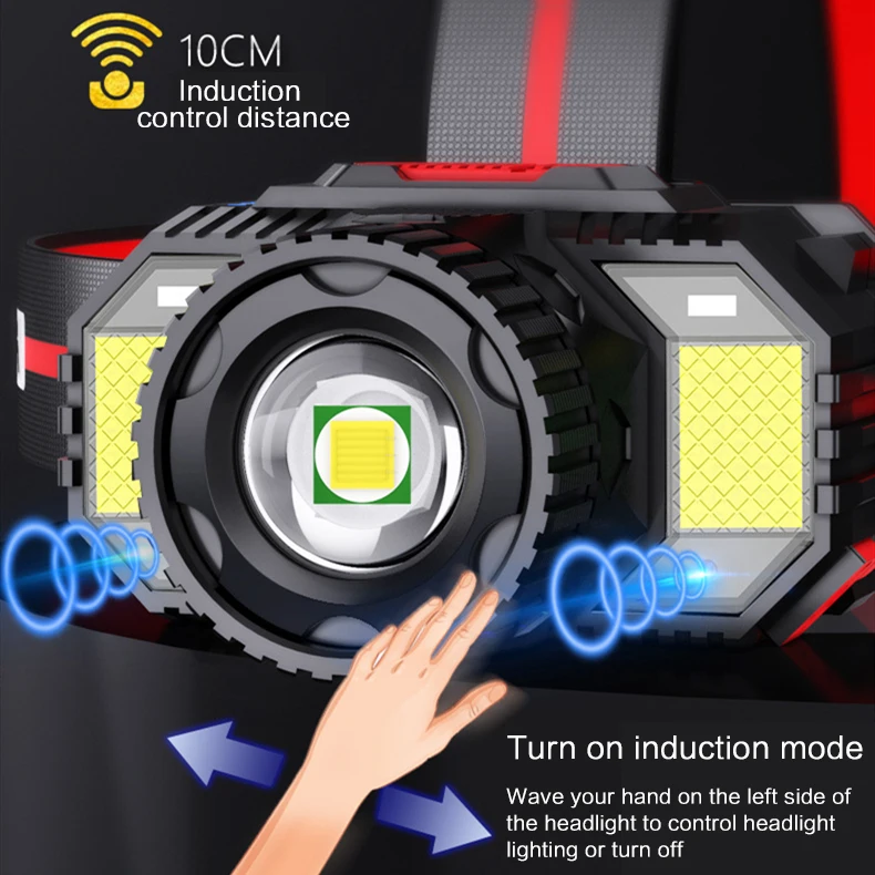 Самый мощный светодиодный налобный фонарь, перезаряжаемый рабочий COB светильник с ИК-датчиком, водонепроницаемый, для кемпинга, лучший головной светильник со встроенным аккумулятором