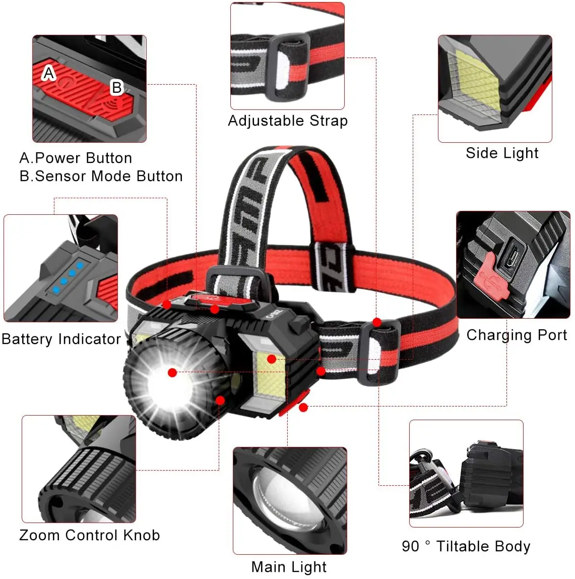 LED Rechargeable HeadlampsMotion sensor allows for easy on and off with the wave of your hand.