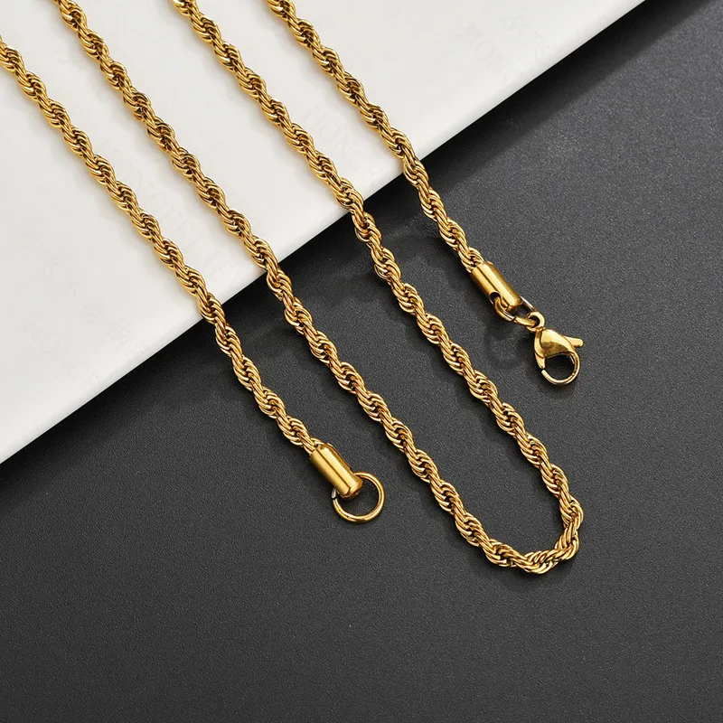 LETAPI Новая нержавеющая сталь веревка Мужская цепочка подвеска золотой тон скрученная волна звенья основные Цепи чокер унисекс панк ювелирные изделия