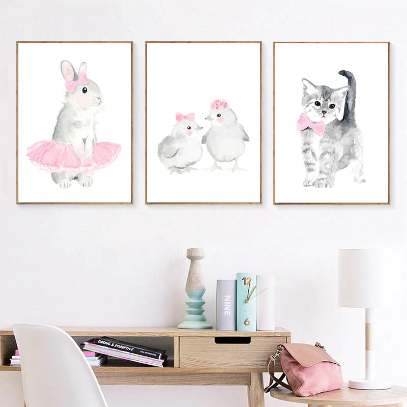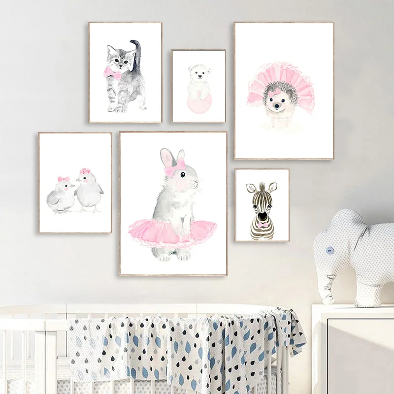Картина на холсте для детской комнаты, с изображением животных, пин...