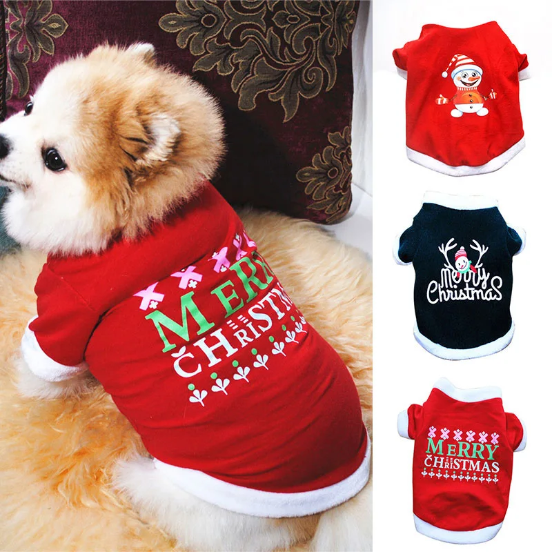 Рождественская Одежда для собак, пальто для чихуахуа, зимний флисовый теплый свитер с принтом Санта-Клауса