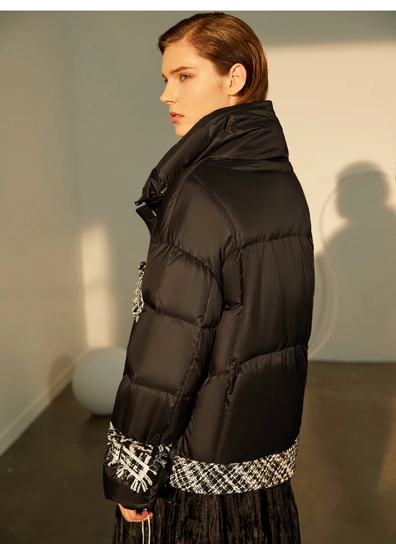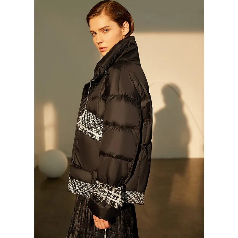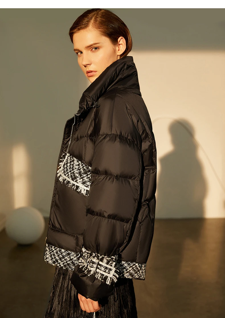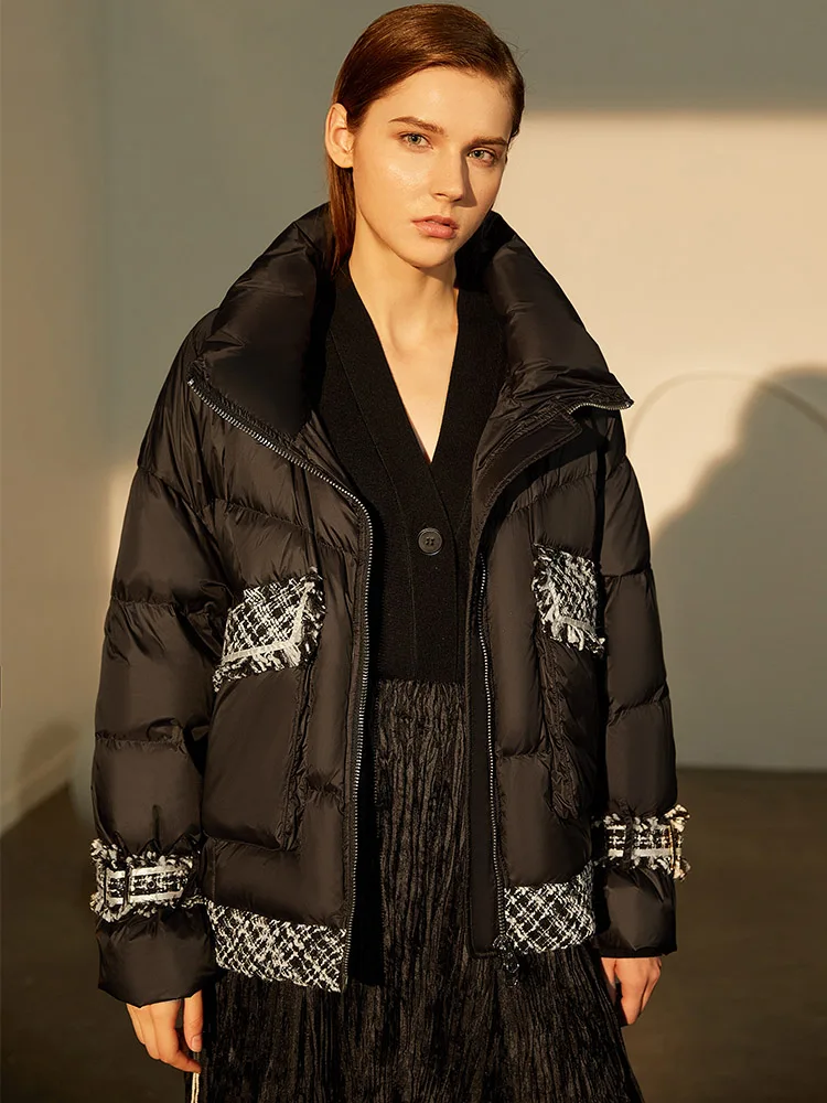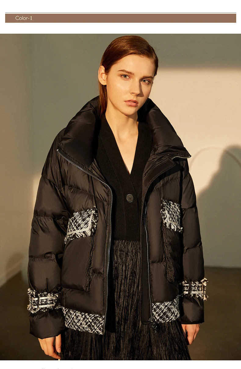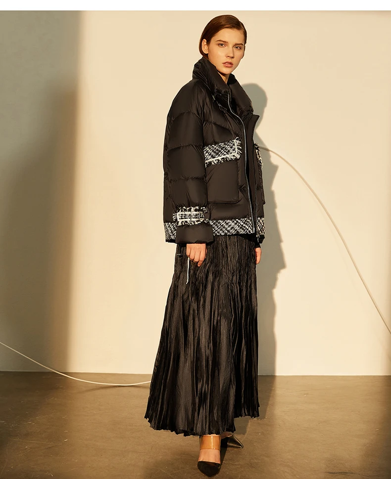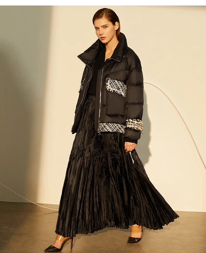 Рекомендую к покупке. Качество отличное, швы ровные, внутри пух, выглядит эффектно. Необычная модель. Мой рост 170, хотелось бы удлинить рукав на 1 см. Но визуально незаметно.