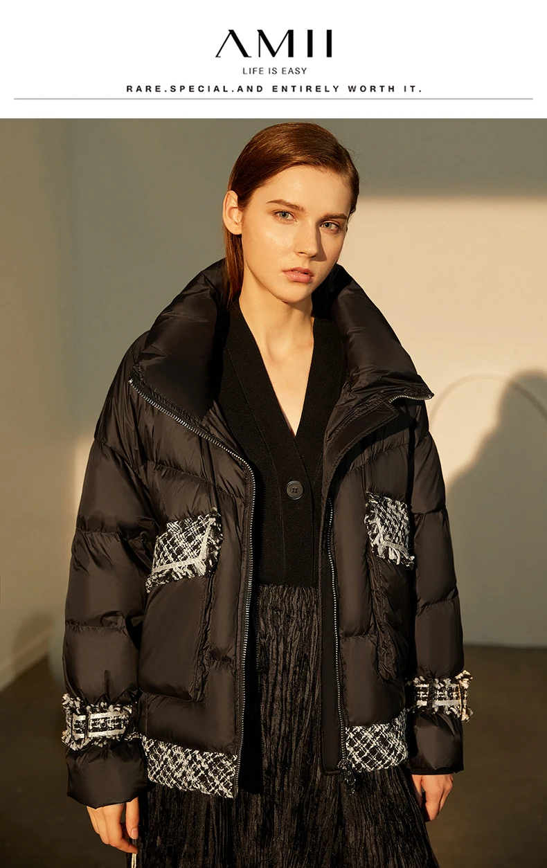Качество супер! Когда получила пуховик, было в нашем регионе 25 градусов мороза с ветром! Но пуховик держит тепло и в нем не холодно! Очень выигрывает фасон необычный. Вообщем рекомендую к покупке, стоит своих денег ! Amii всегда на высоте!