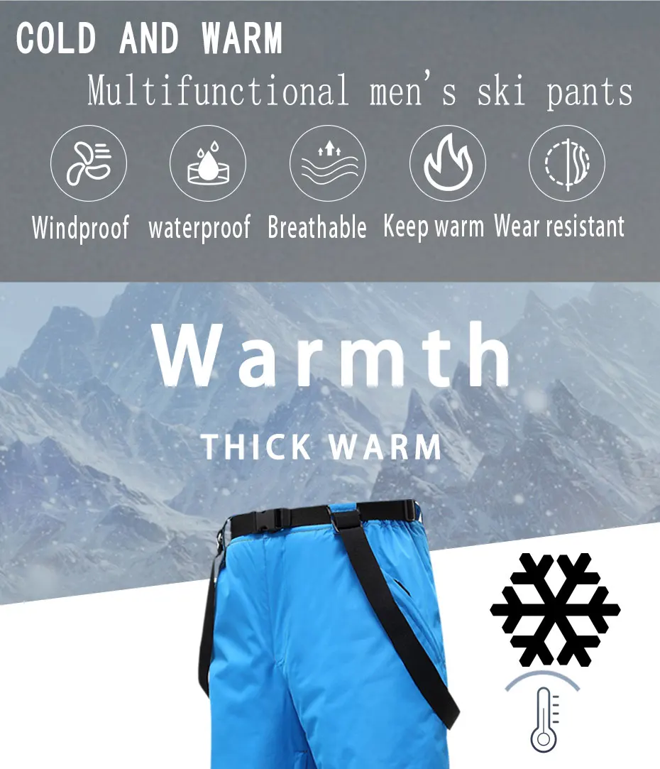 Мужские лыжные брюки брендовые теплые уличные спортивные водонепроницаемые плотные зимние брюки подтяжки зимние брюки для сноуборда для мужчин