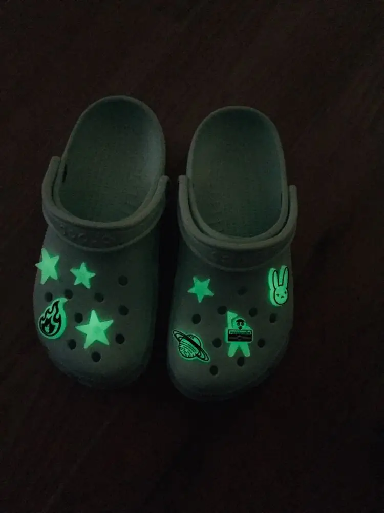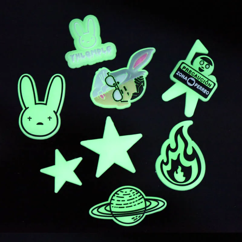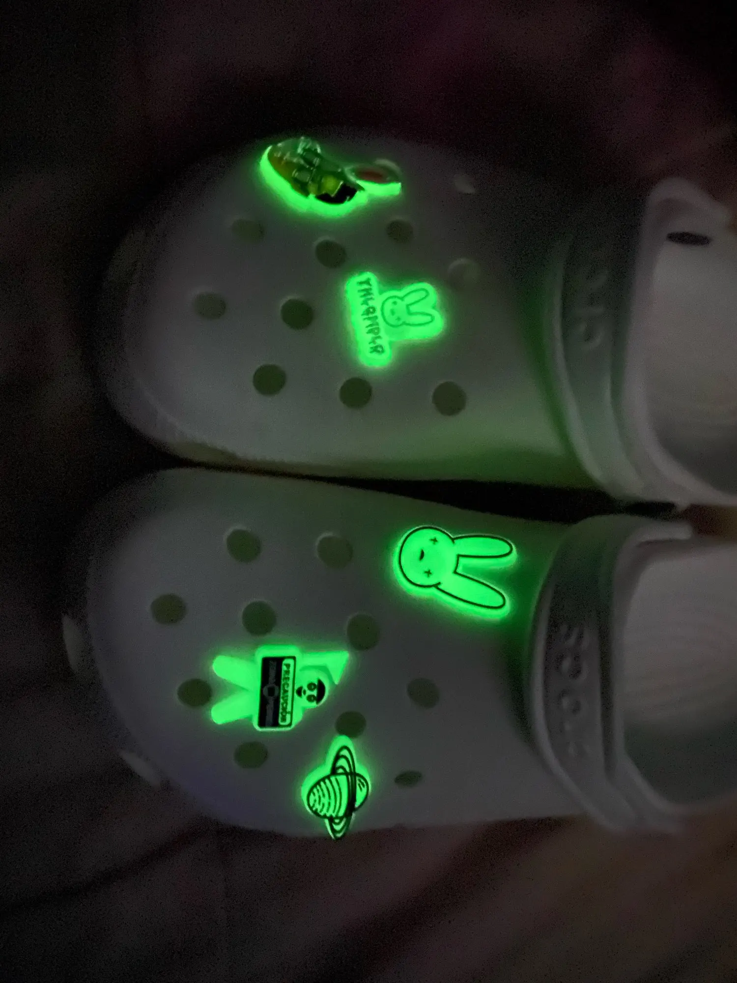 Новый стиль, легкий кролик, мягкая резиновая обувь из ПВХ светится в темноте, подвески, аксессуары для крокодиловой обуви, детский подарок на Рождество вечерние