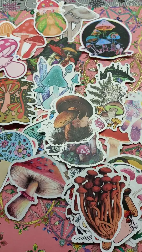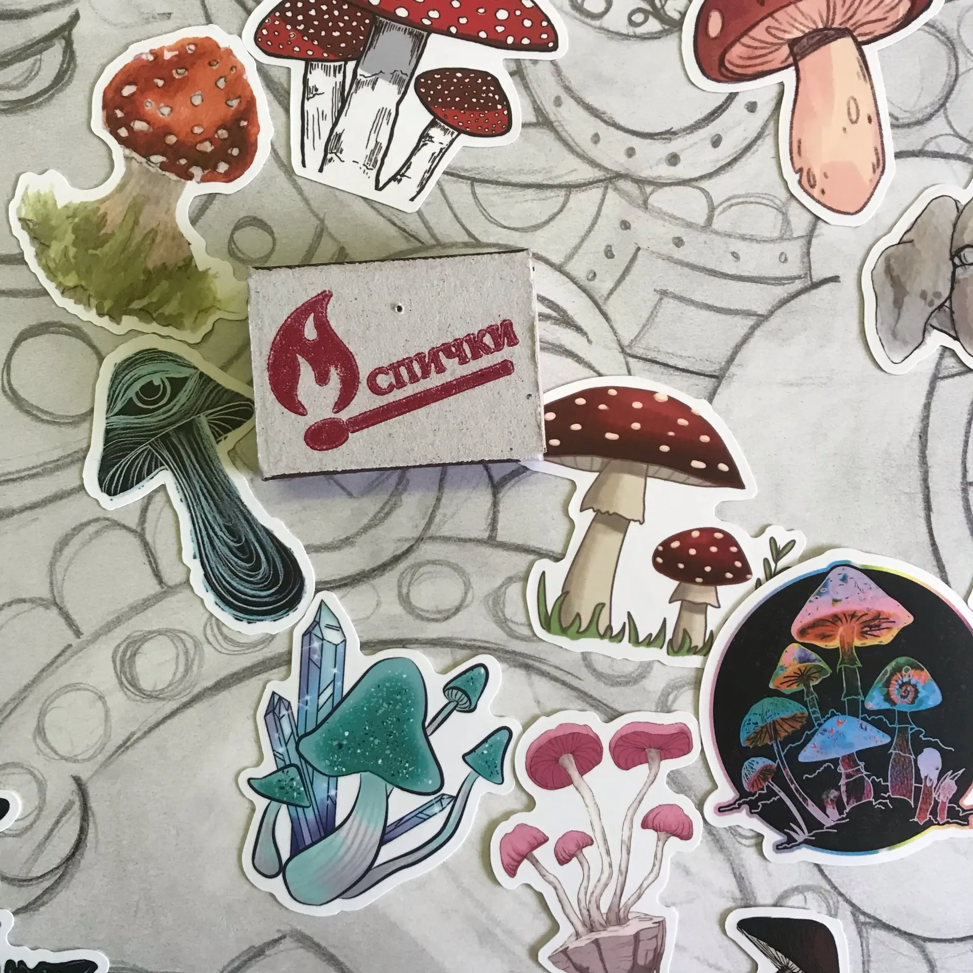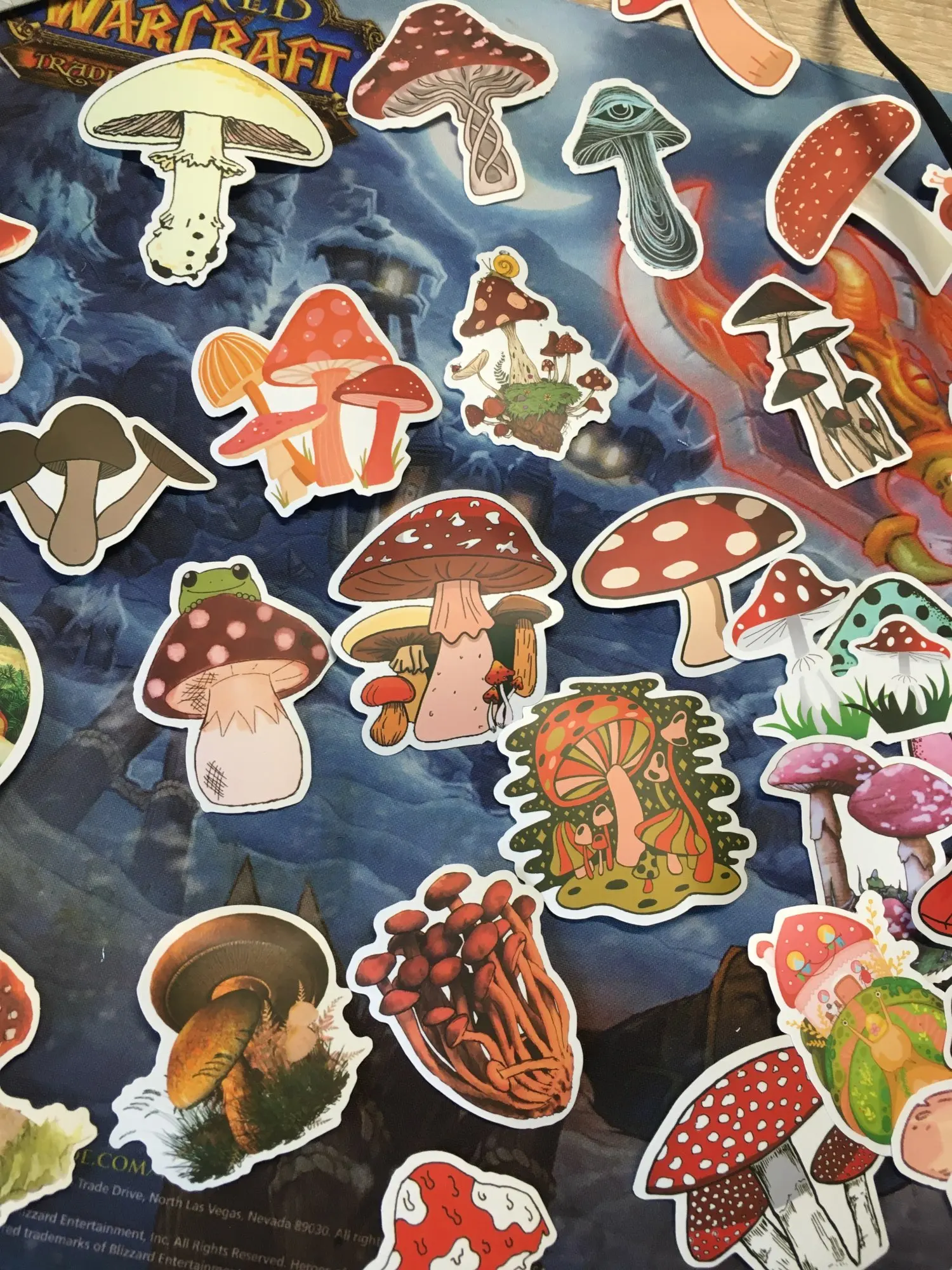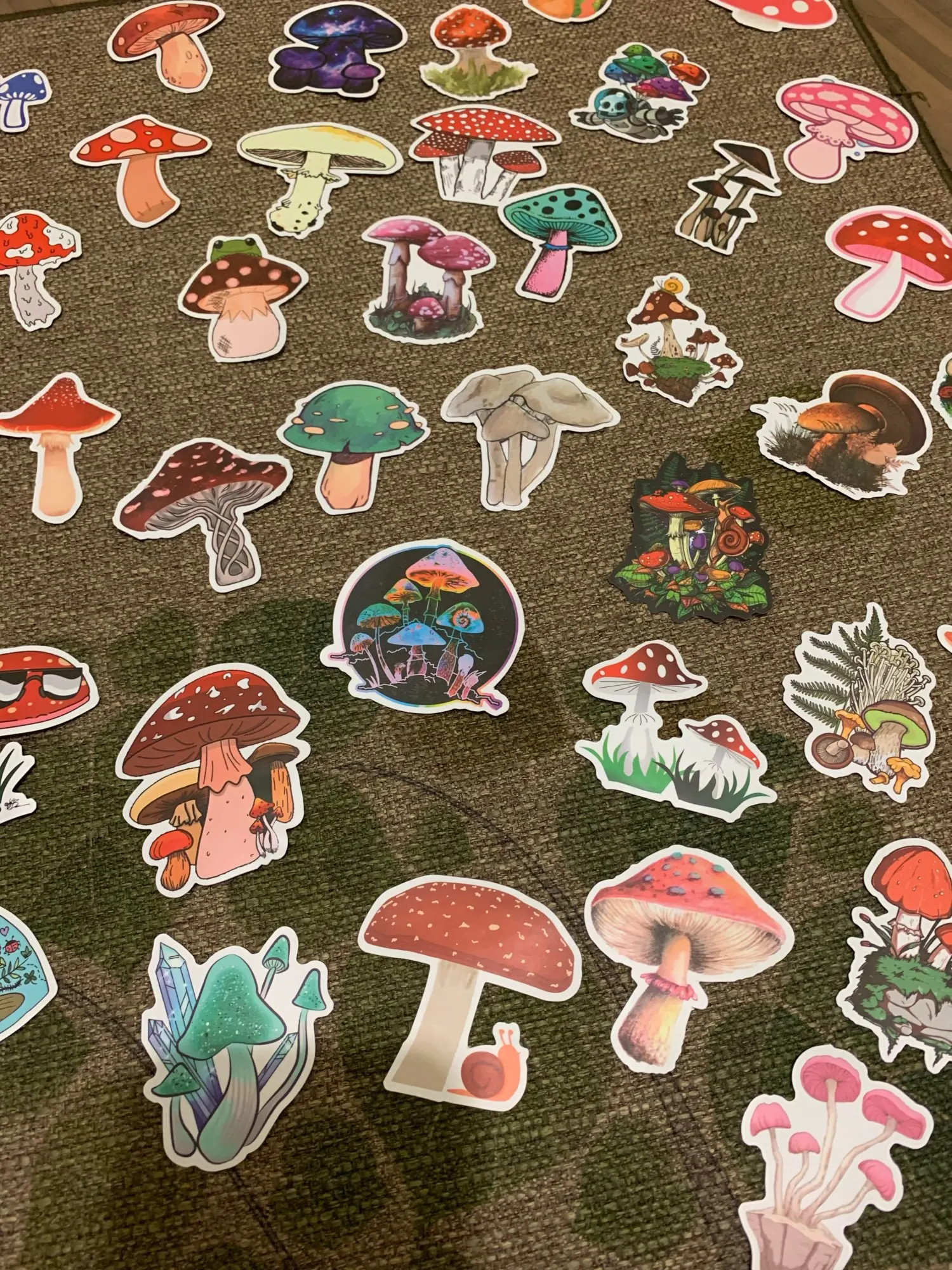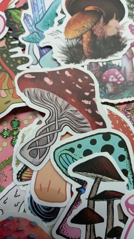 Невероятно! Я нашла очаровательные грибы с тех пор, как была ребенком. Все виды наклеек в виде грибов, о которых вы можете подумать здесь: реалистичные, Мультяшные, элегантные, psychedelic, забавные, милые, красочные, загадочные. Один из них был даже флагом Би, который я очень рад что-то надеть.
