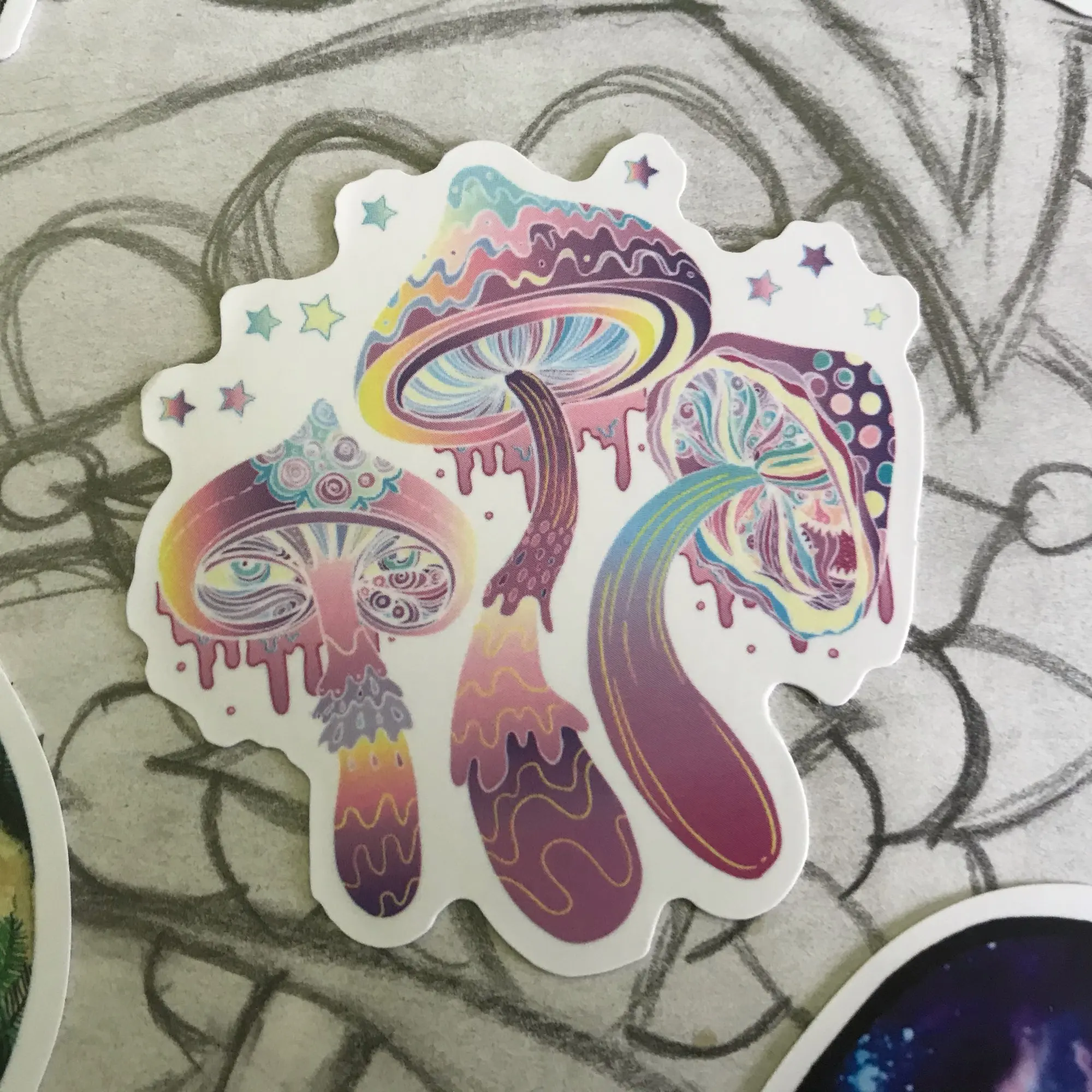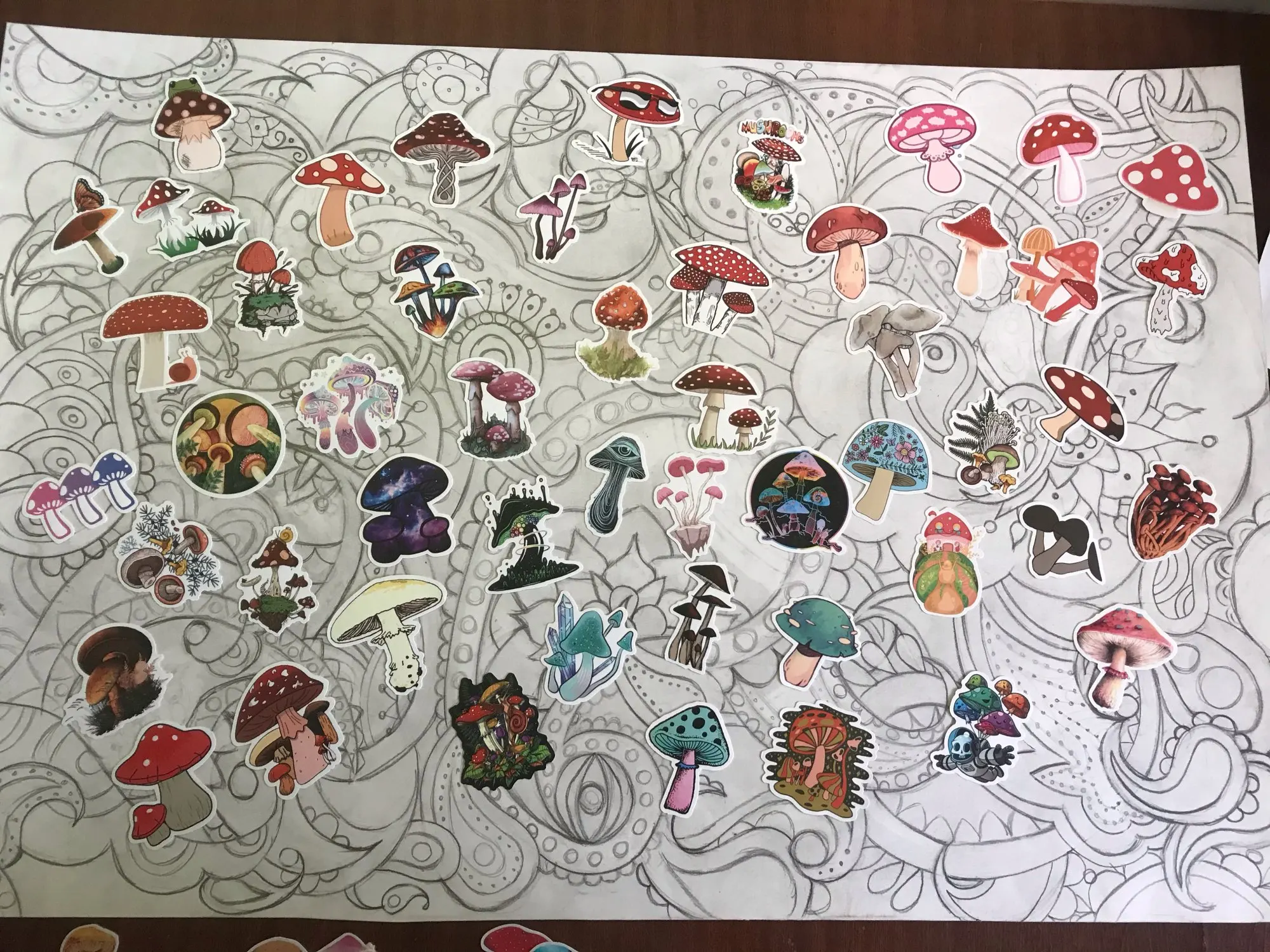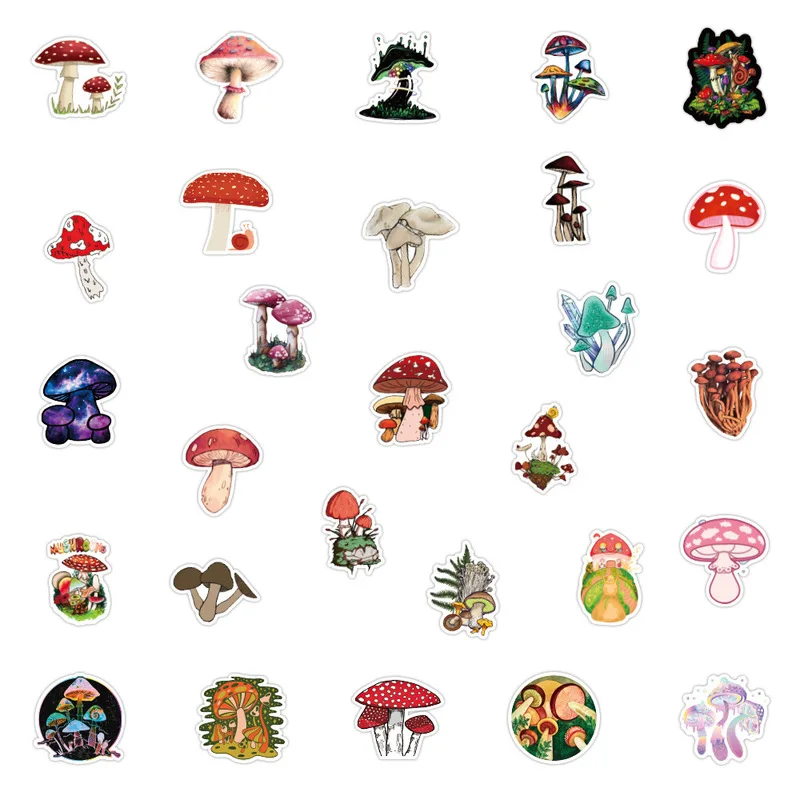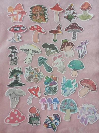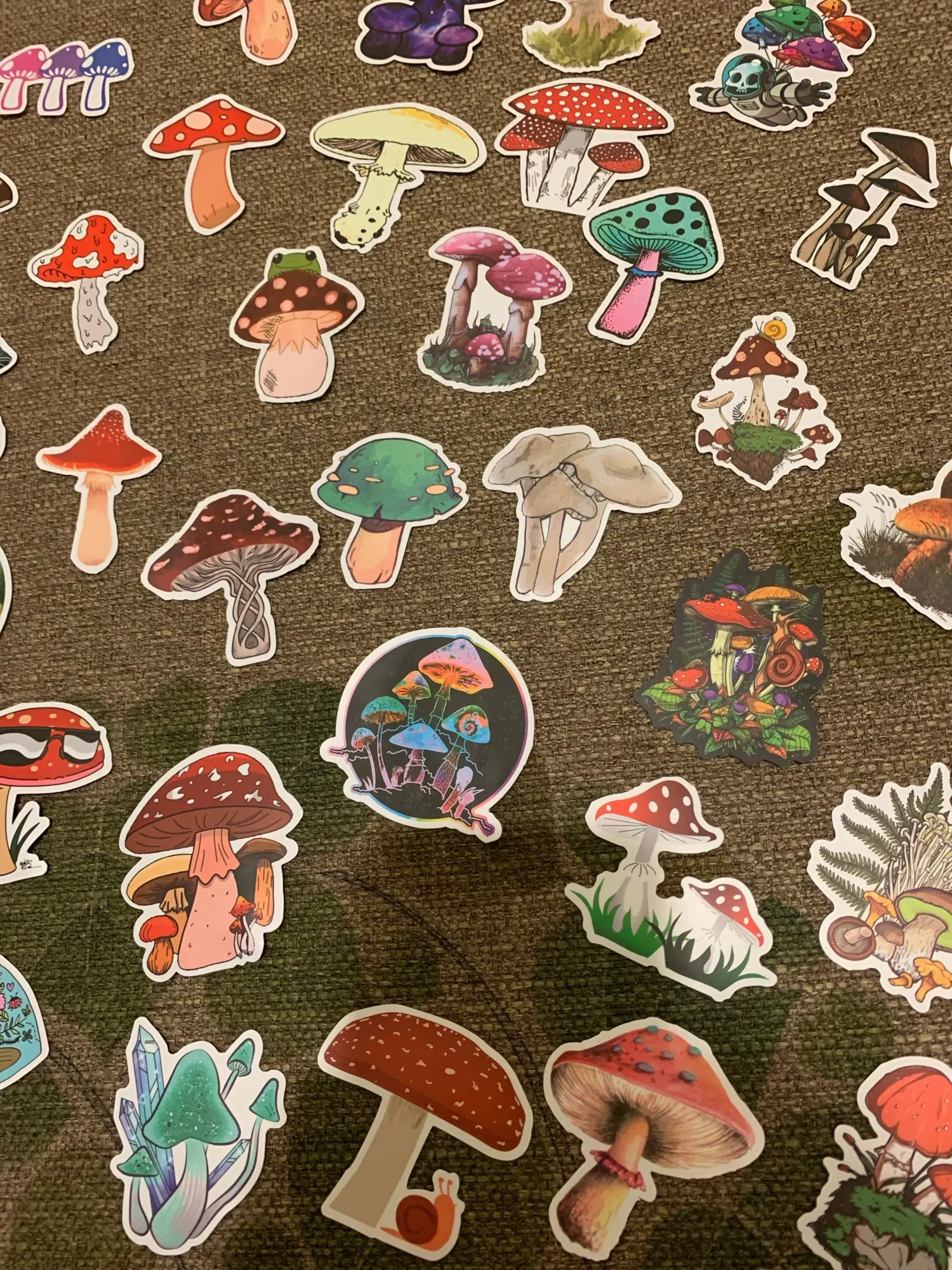 Невероятно! Я нашла очаровательные грибы с тех пор, как была ребенком. Все виды наклеек в виде грибов, о которых вы можете подумать здесь: реалистичные, Мультяшные, элегантные, psychedelic, забавные, милые, красочные, загадочные. Один из них был даже флагом Би, который я очень рад что-то надеть.