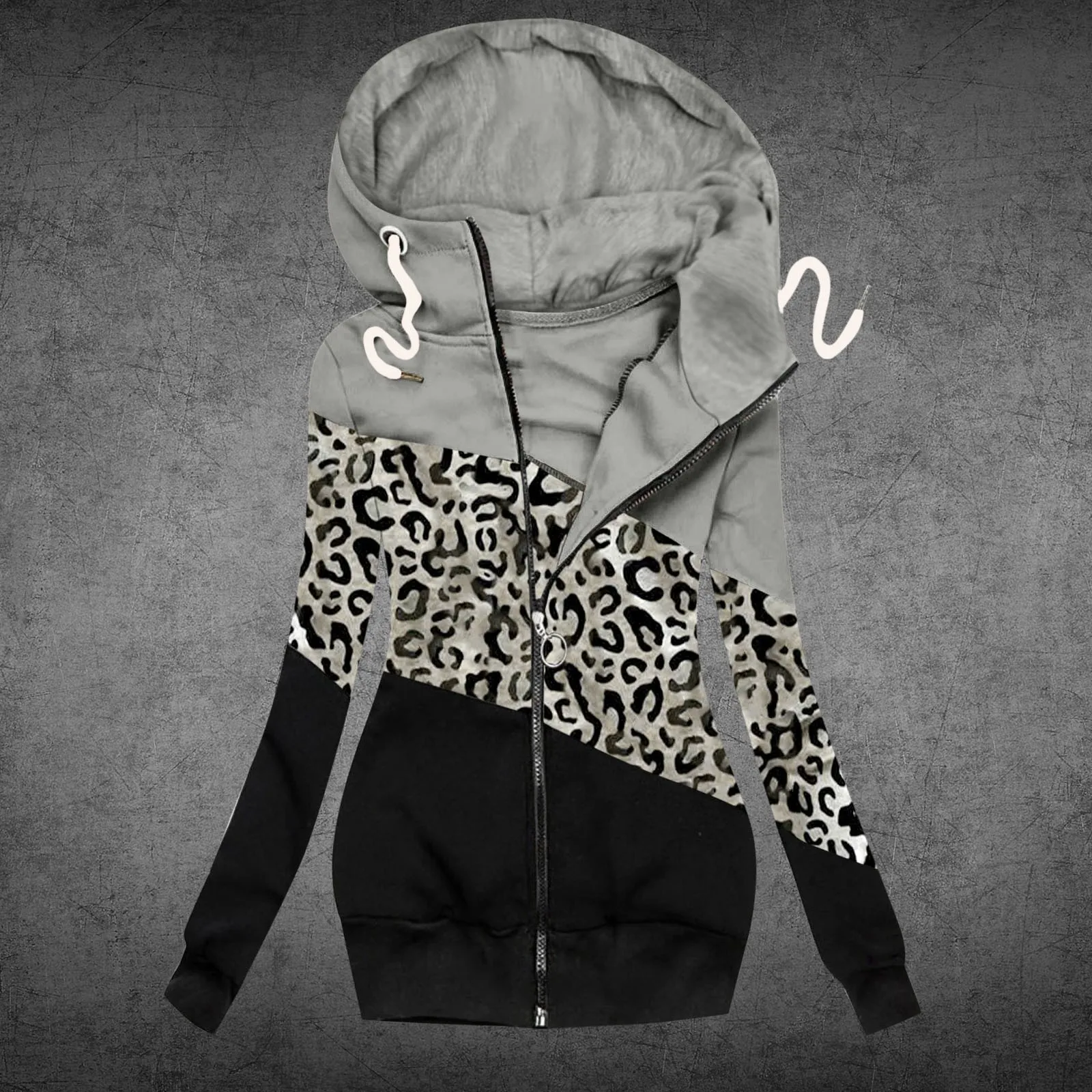 Женская зимняя повседневная куртка с леопардовым принтом, толстовка на молнии с длинным рукавом