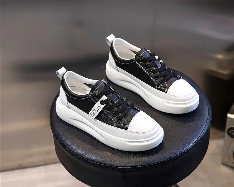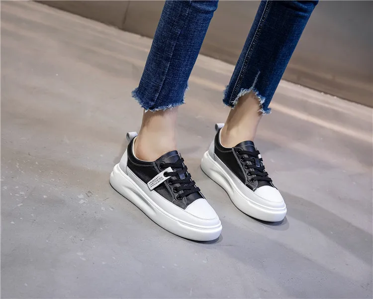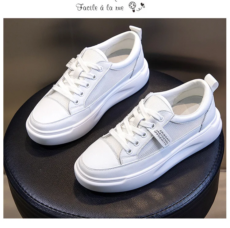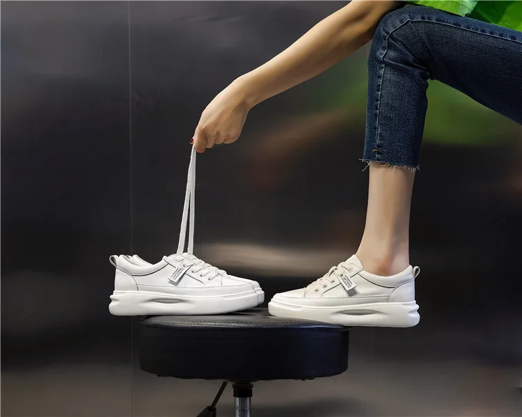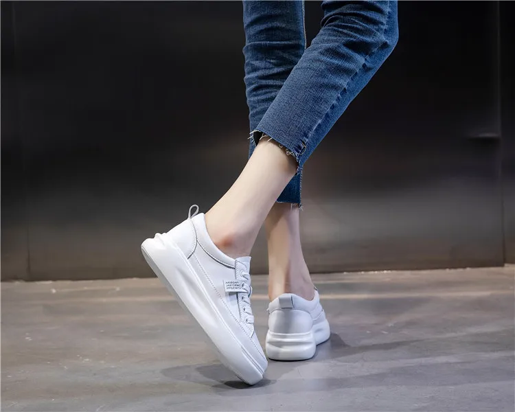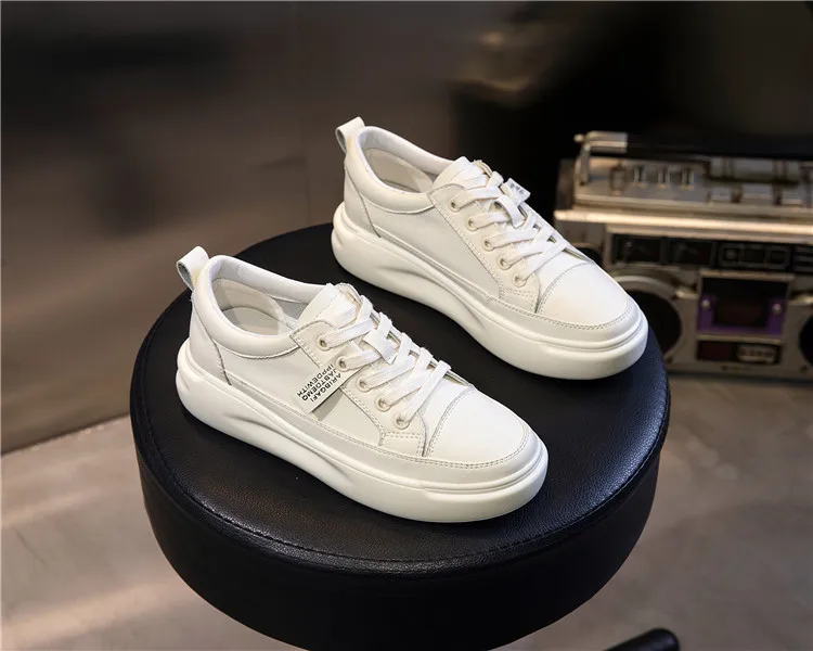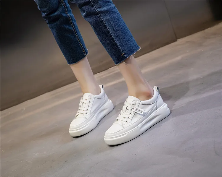 Новая женская обувь; Кожаные белые туфли на толстой подошве; Сезон весна-лето; Спортивная женская повседневная обувь на плоской подошве; Большие размеры