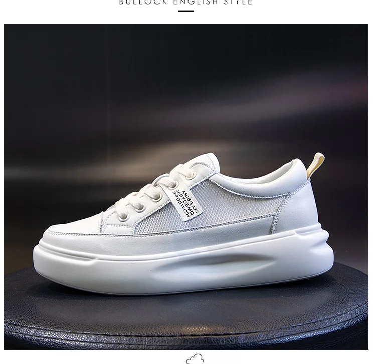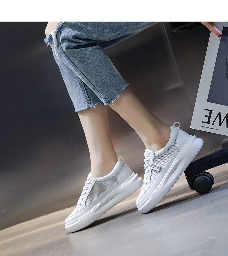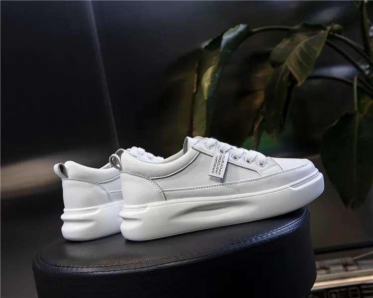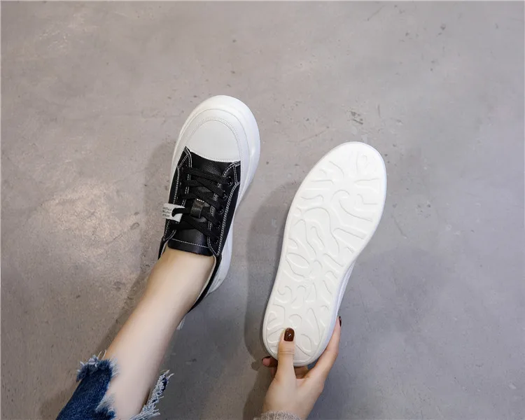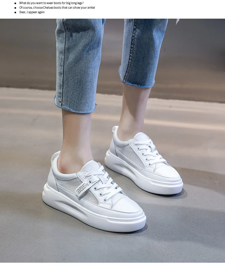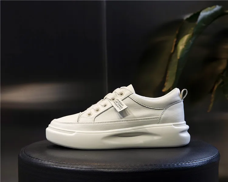 Новая женская обувь; Кожаные белые туфли на толстой подошве; Сезон весна-лето; Спортивная женская повседневная обувь на плоской подошве; Большие размеры