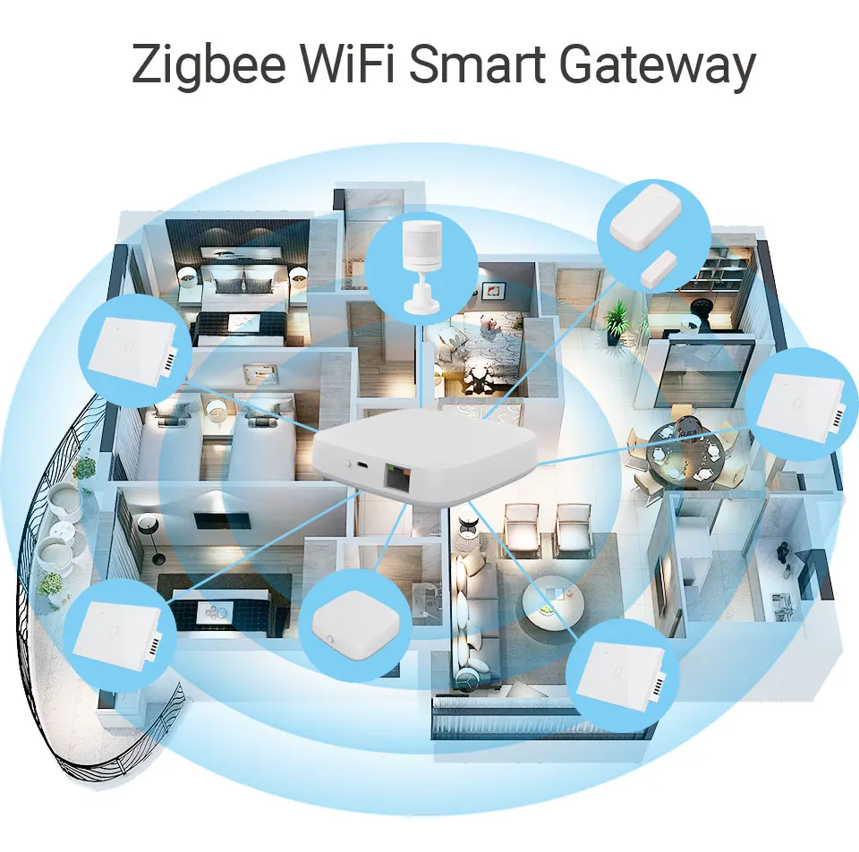 1. Многорежимный шлюз 2. Можно управлять голосом, пультом дистанционного управления и автоматизацией 3. Умный датчик окна двери, датчик человеческого тела, датчик температуры и влажности, переключатель Zigbee и т. д. 4. Сделайте свой умный дом проще
