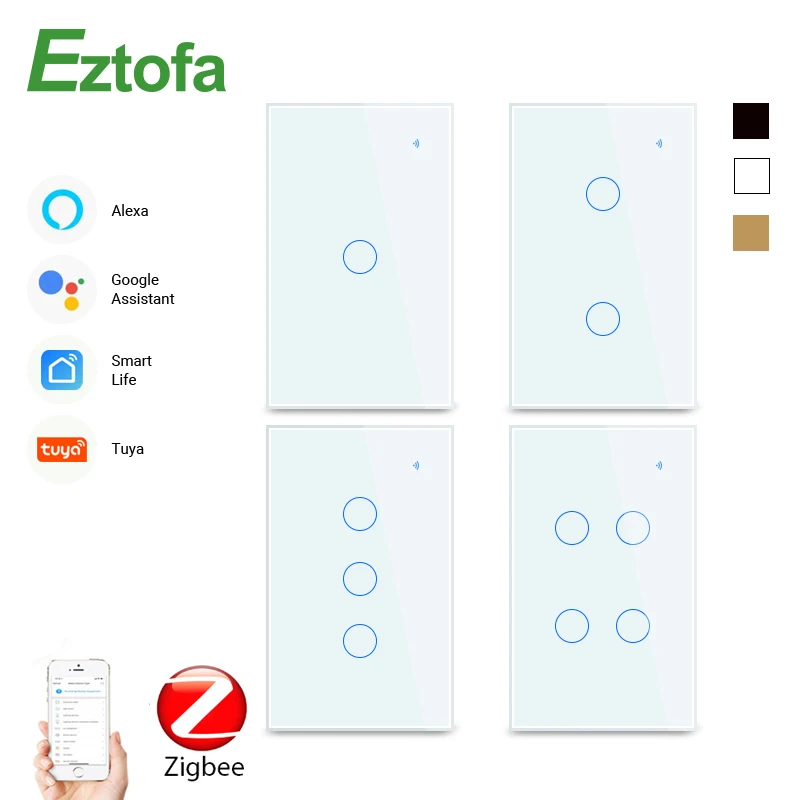 1234 Gang 2/3Way WiFi сенсорный выключатель AC 100v220v настсветильник ключатель света Умный дом Zigbee Беспроводной пульт дистанционного управления Tuya App стандарт США