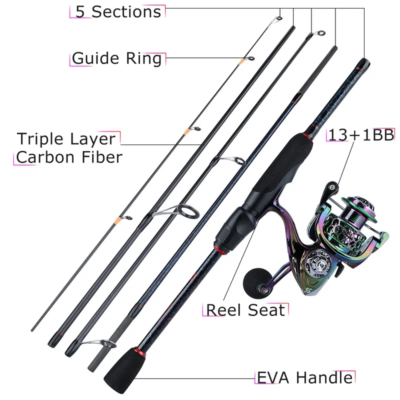 Полный набор для рыбалки, 5 секций, удилище для приманки 1,8-2,4 м, 13 + 1 подшипников