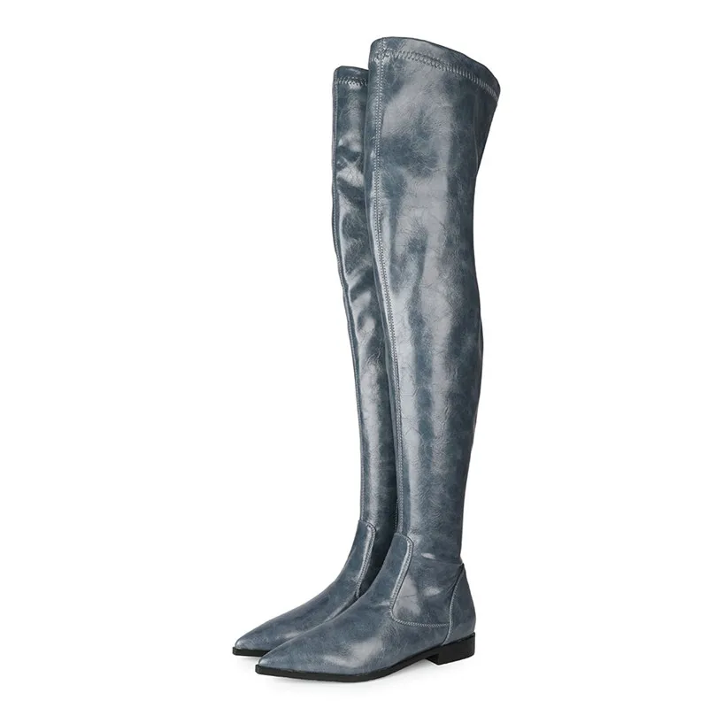 Женские однотонные ботинки на плоской подошве, с острым носком, на молнии