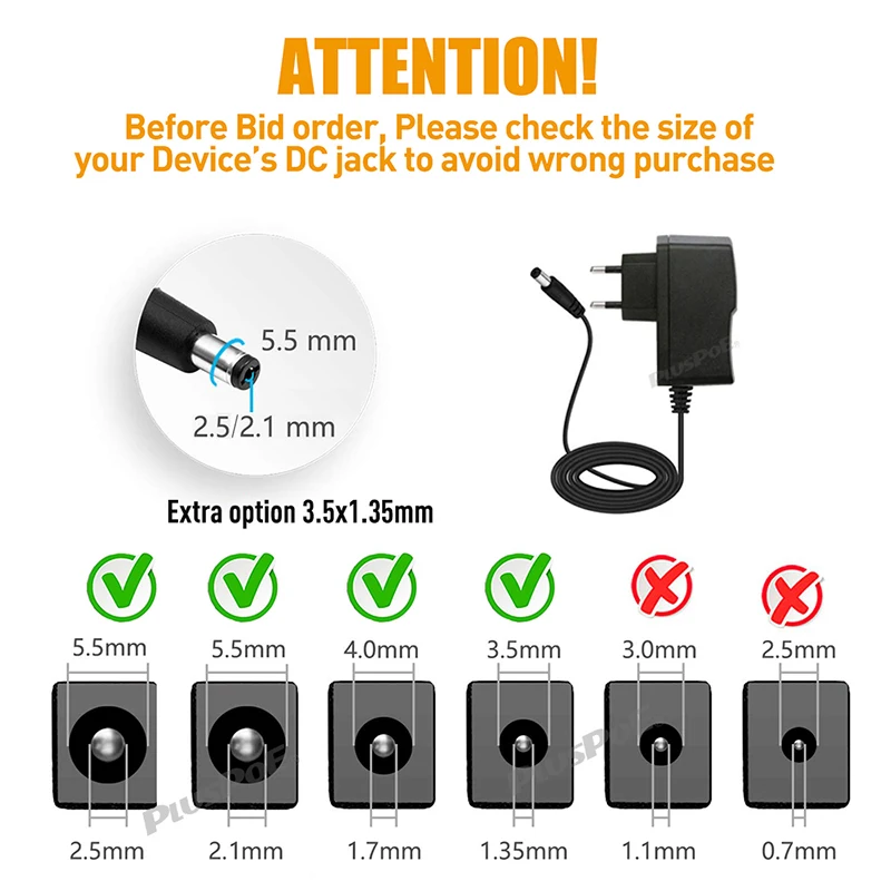 1. Вход напряжение: 100-240V 50/60 ч2. Выходное напряжение: DC 6V 0.5A, 1A, 2A3. Мощность (максимальная выходная мощность): 3 Вт, 6 Вт, 12 Вт,3. Форма: как показано ниже, физическая карта 1 метр в длину4. Разъем постоянного тока: 5,5 мм * 2,5 мм (совместимый 5,5*2,1 мм)/3,5*1,35 мм5. Цвет: черный6. Полярность: внутренняя положительная и внешняя отрицательная