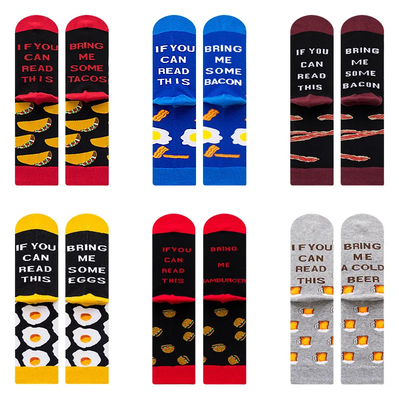 Носки мужские хлопковые в стиле Харадзюку, повседневные смешные носки с надписью, кофейным яйцом, пивом, суши, пиццей, кошкой, рождественский подарок для мужчин, европейские размеры 40-46