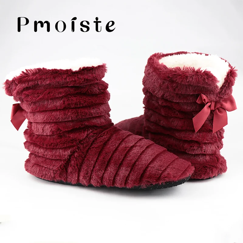 Меховые тапочки для женщин; 2020; Домашние тапочки с бантиком и мехом; Очень мягкая зимняя домашняя обувь; Удобные домашние тапочки для девочек
