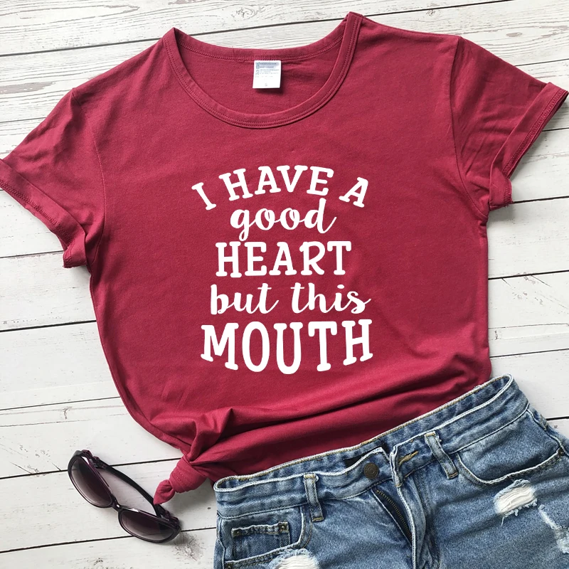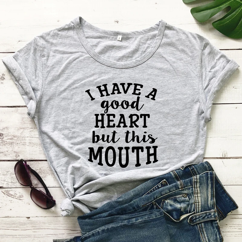У меня хорошее сердце, но эта футболка с ртом, повседневная женская футболка с коротким рукавом, сарказм, смешные будьте добры, графические футболки, топы, Прямая поставка