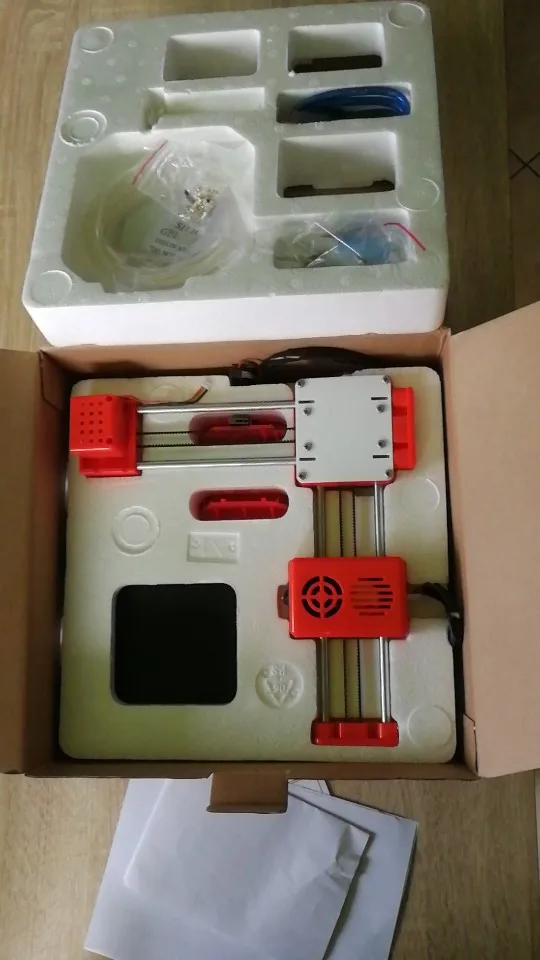 Посылка1 х X1/k7 3D принтер1 x Кабель Питания1 х USB кабель1 карта TF1 кардридер1 х Руководство пользователя1 крестовая отвертка1x10 м нить PLA 1,75 (случайный цвет)1 х Набор держателей нитиВ комплекте: аксессуары для программного обеспечения внутри TF-карты