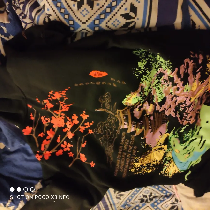 Мне нравится внешний вид, но не материал. Он очень легкий, поэтому не сидит хорошо. Но мне нравится графика. Скрещенные пальцы, потому что я сейчас его постираю.