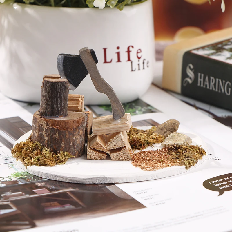 Миниатюрный деревянный топор для кукольного домика 1:12, 1 комплект, аксессуары для украшения сада