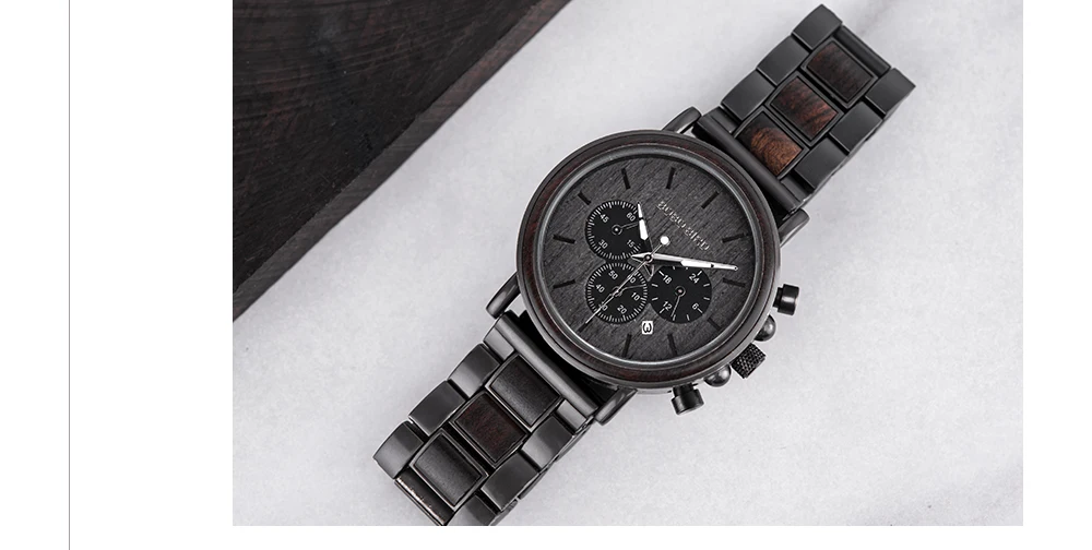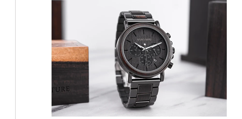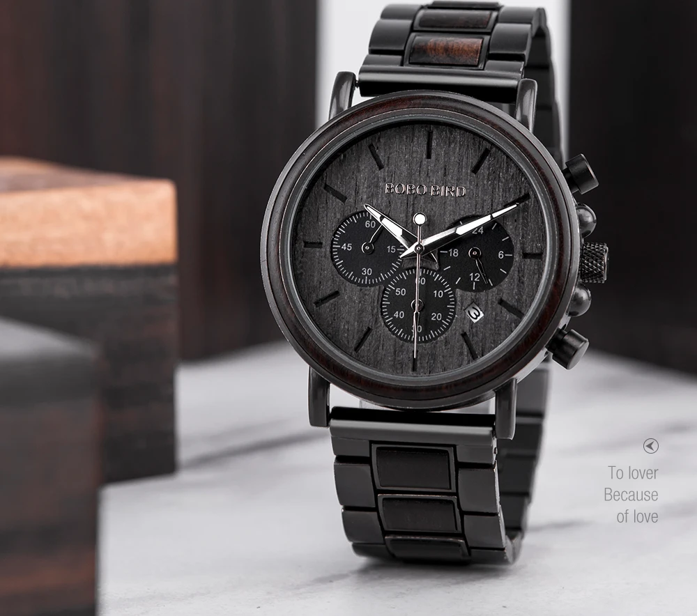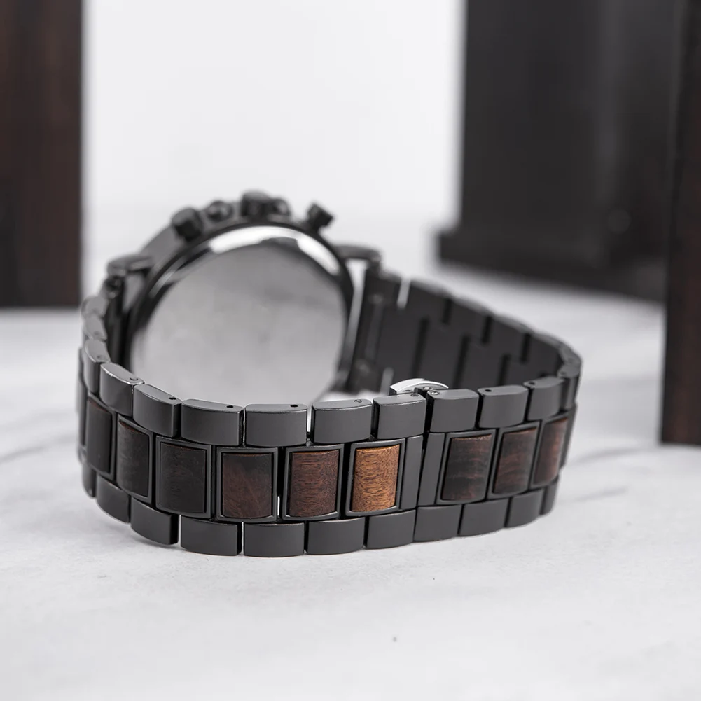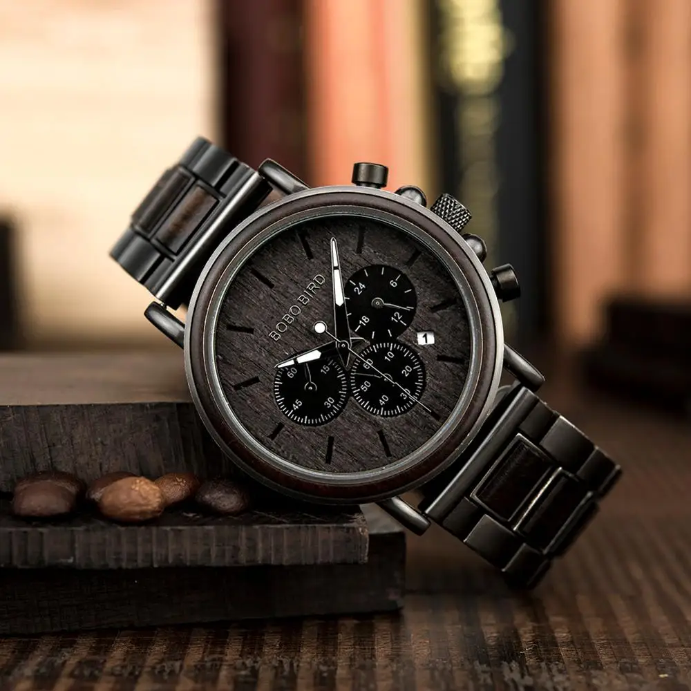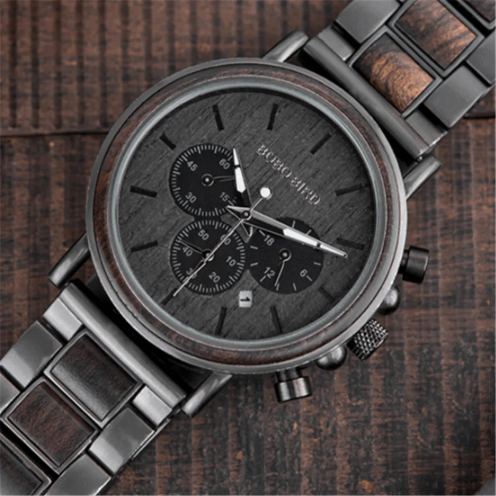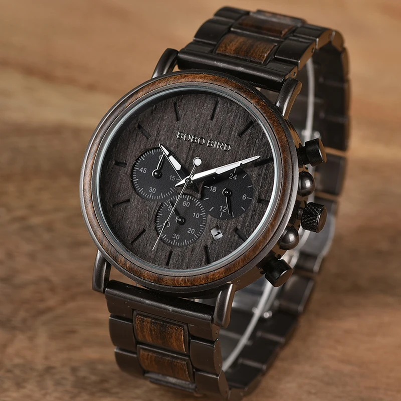 Часы наручные BOBO BIRD Мужские кварцевые, люксовые модные светящиеся с деревянным ремешком, с автоматической датой и хронографом, подарок
