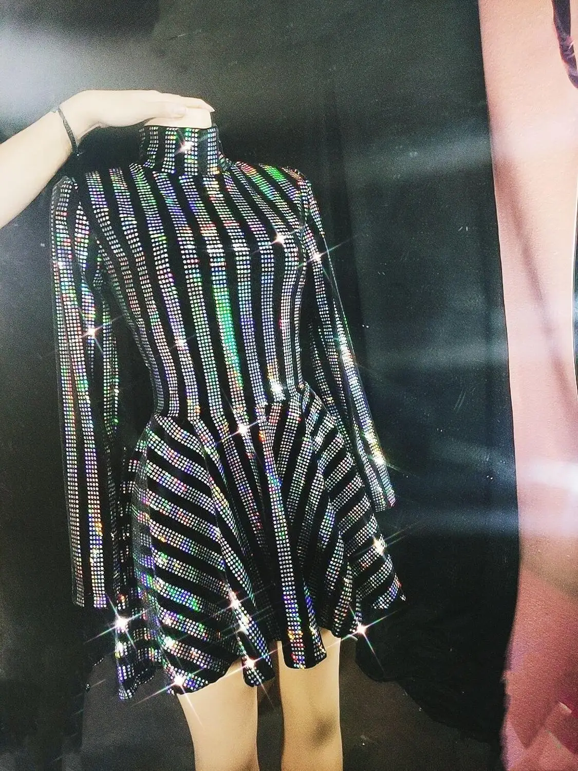Короткое платье с блестками разных цветов, празднование дня рождения, с длинным рукавом, черная одежда для выпускного вечера, женское танцевальное вечернее платье для шоу