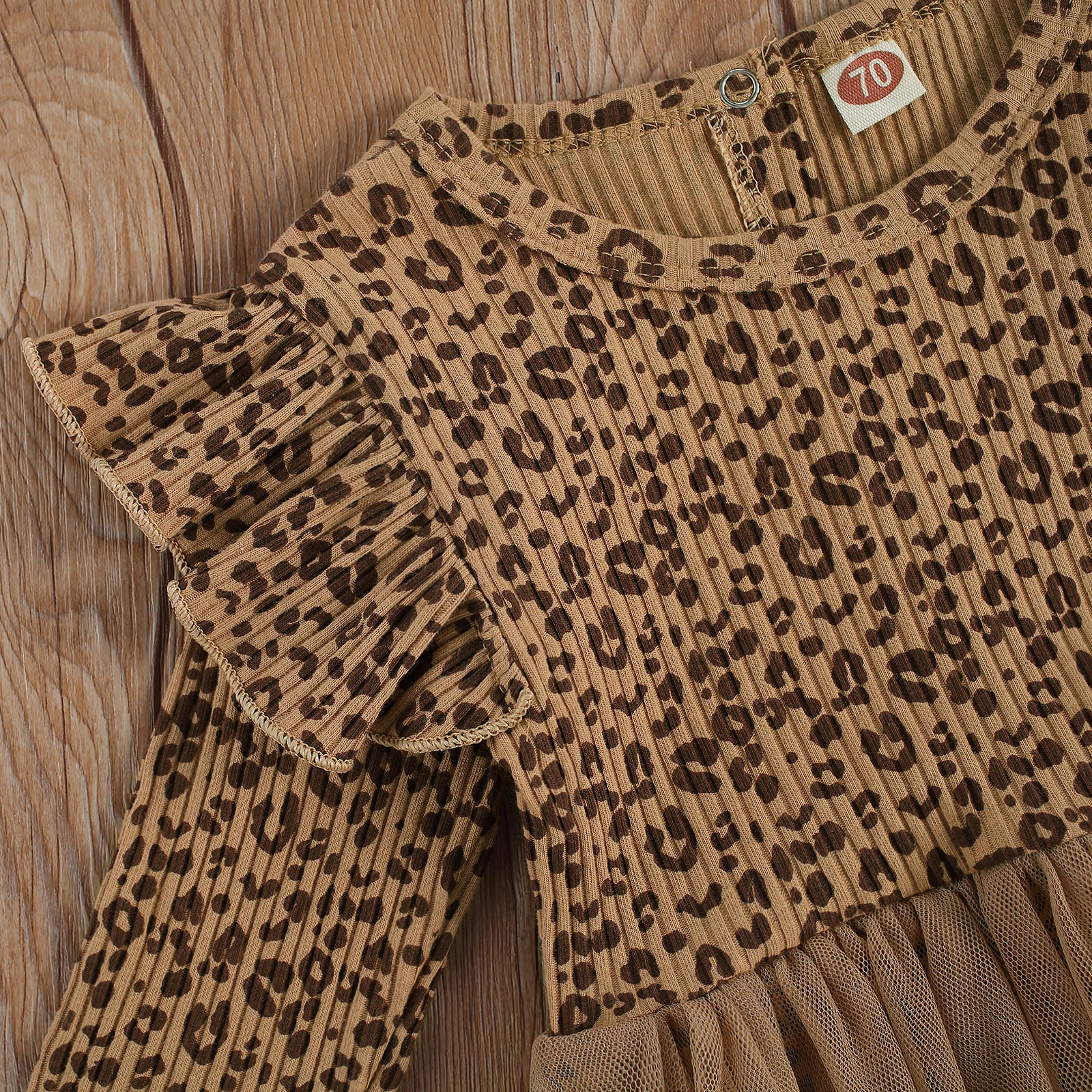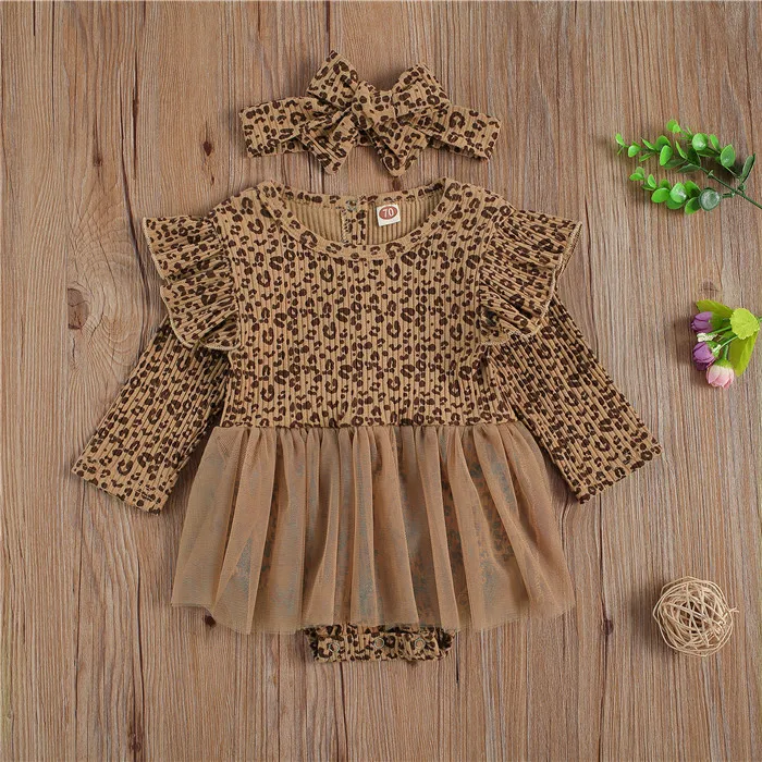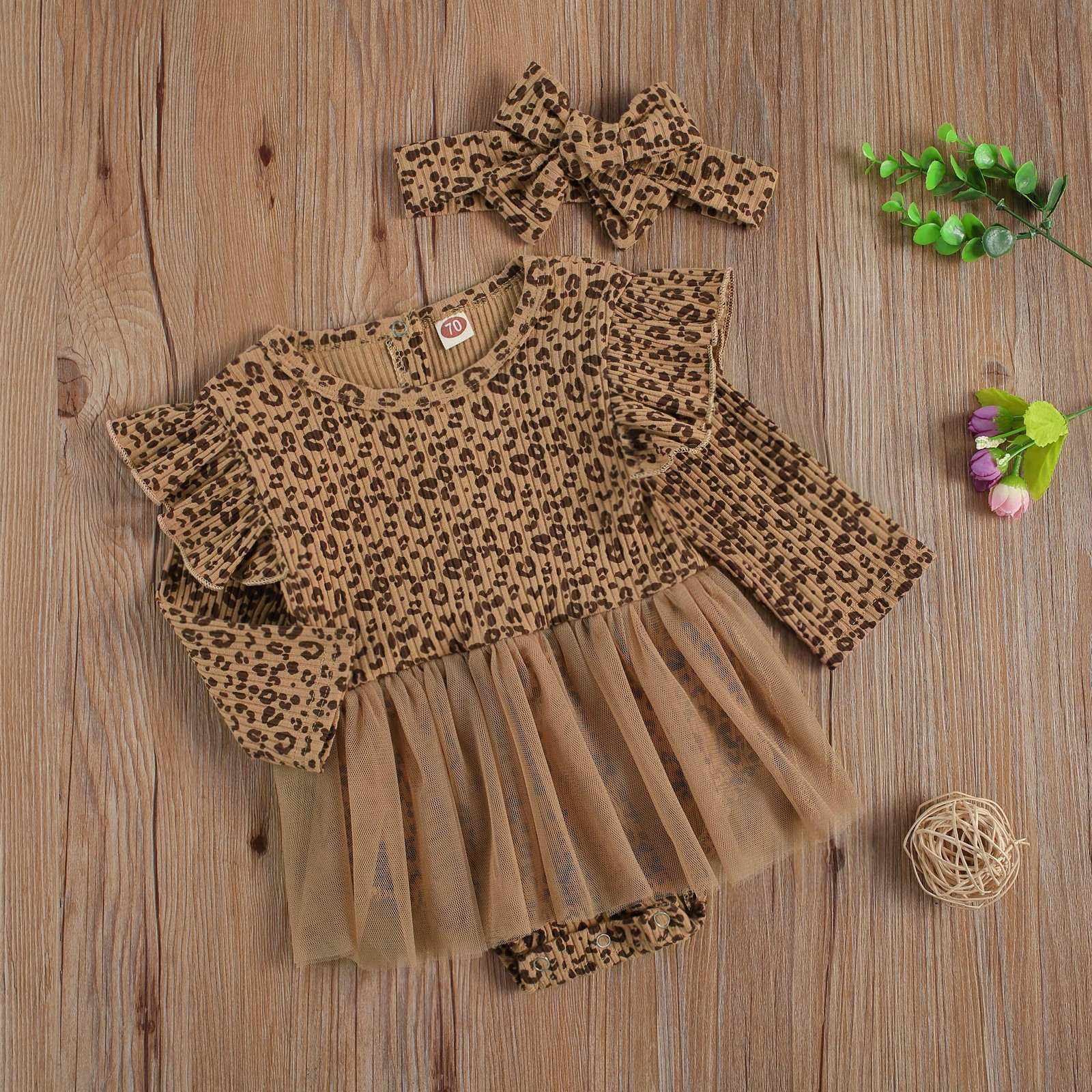 Модный комбинезон для новорожденных девочек, Детский комбинезон с длинными рукавами и леопардовым принтом + кружевная мини-юбка, Осенний комбинезон