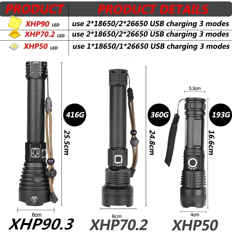 Самый мощный светодиодный фонарик Xlamp XHP90.3 XHP70.2, светодиодный фонарик USB XHP50, тактический фонарь с зумом, перезаряжаемая батарея 18650 26650
