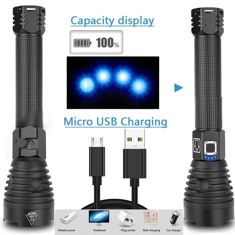Самый мощный светодиодный фонарик Xhp90.2, фонарик с зарядкой от us...