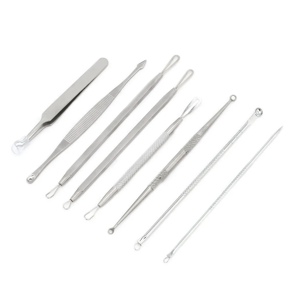 С 8 различными инструментами, подходящими для пирсинга, захвата и удаления акне, черных точек, прыщей и пустулы.